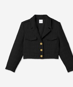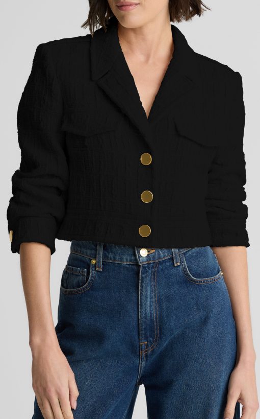 A must-have for the sophisticated woman’s wardrobe, the Avery Jacket is made from our richly textured Foundry Tweed. In timeless Black, this elegant staple is neutral enough to pair with everything from denim to coordinated dresses while still making a statement in any setting.