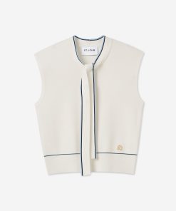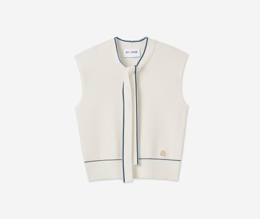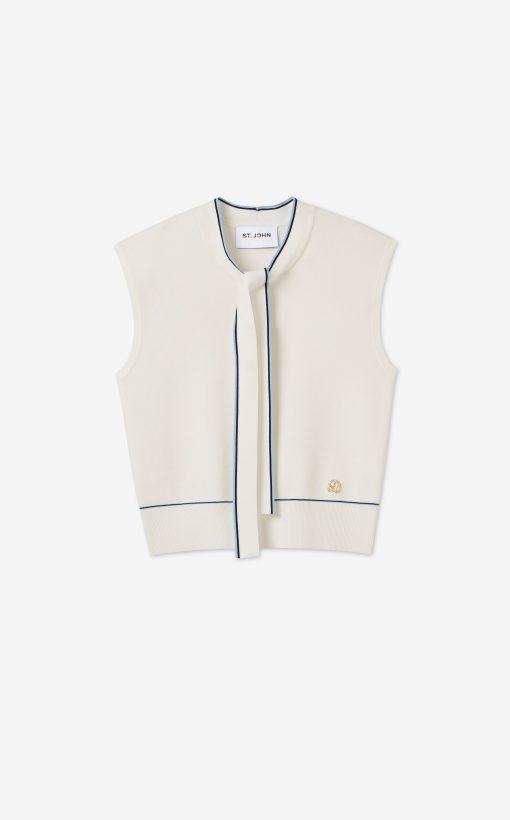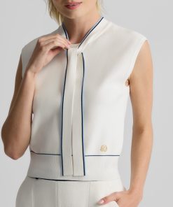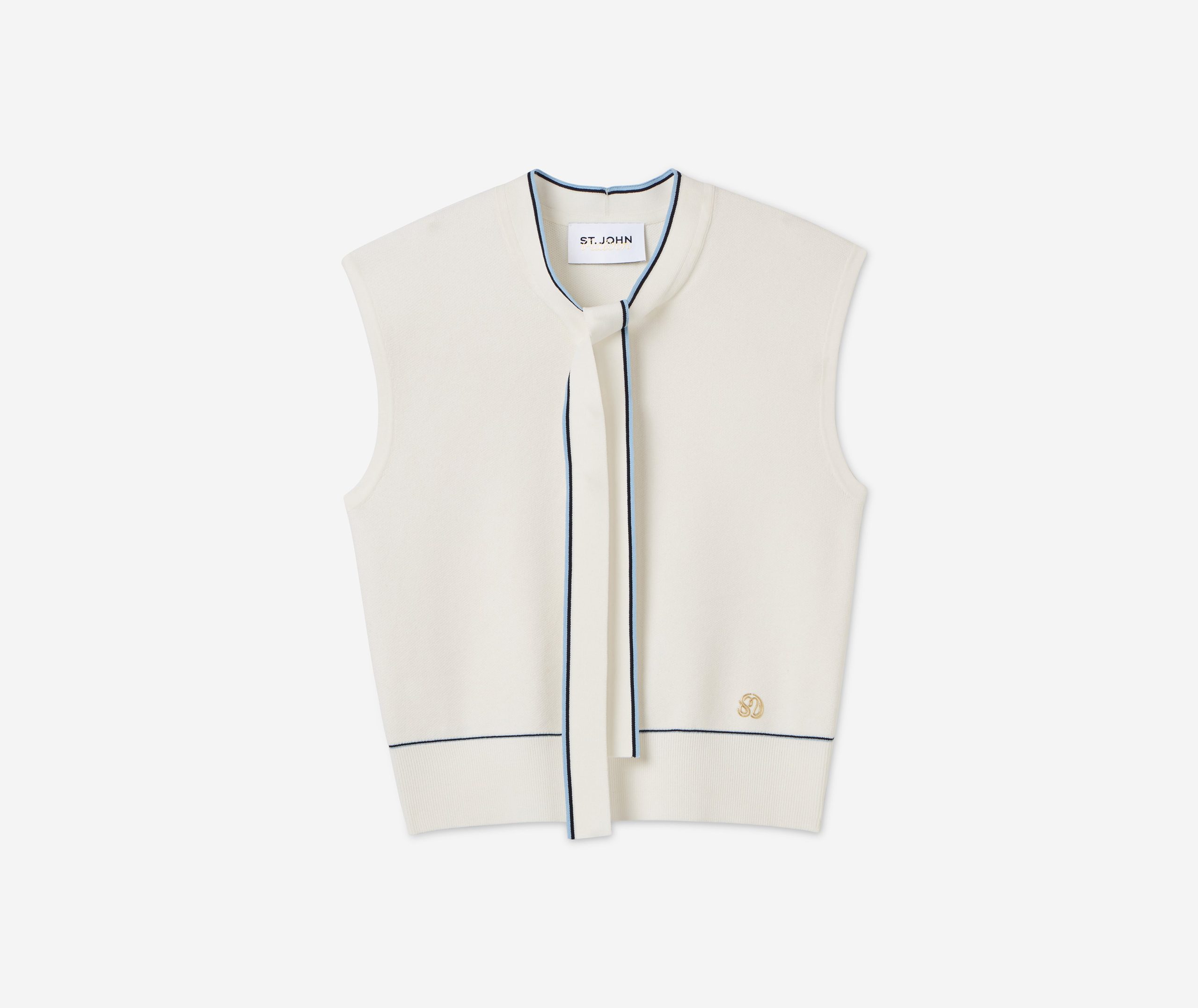 Created in an exclusive collaboration with influential golf brand Malbon, the Cali blends modern craftsmanship and vintage charm for a myriad of styling options well beyond the golf club. Its flexible Stretch Knit and ribbed hem give this sleeveless top a crisp look and comfortable fit, while the tie neckline, Celeste and Midnight trim, and gold embroidered logo add a layer of sophistication to the sporty chic aesthetic.