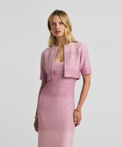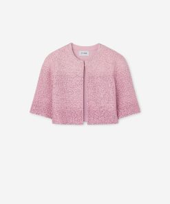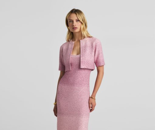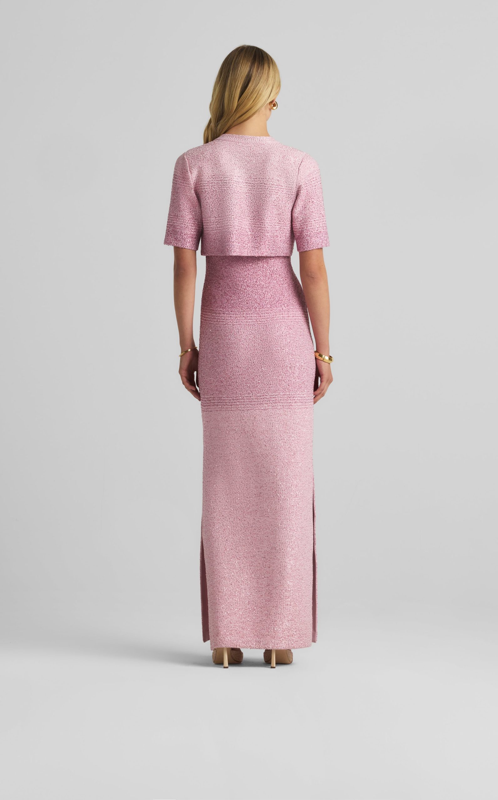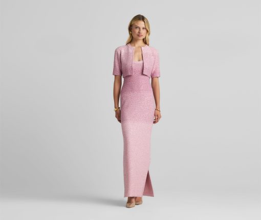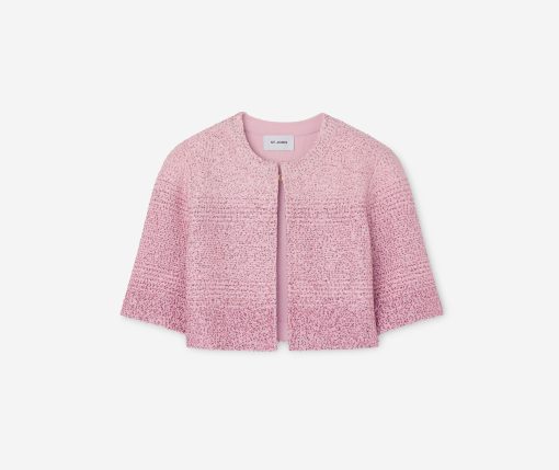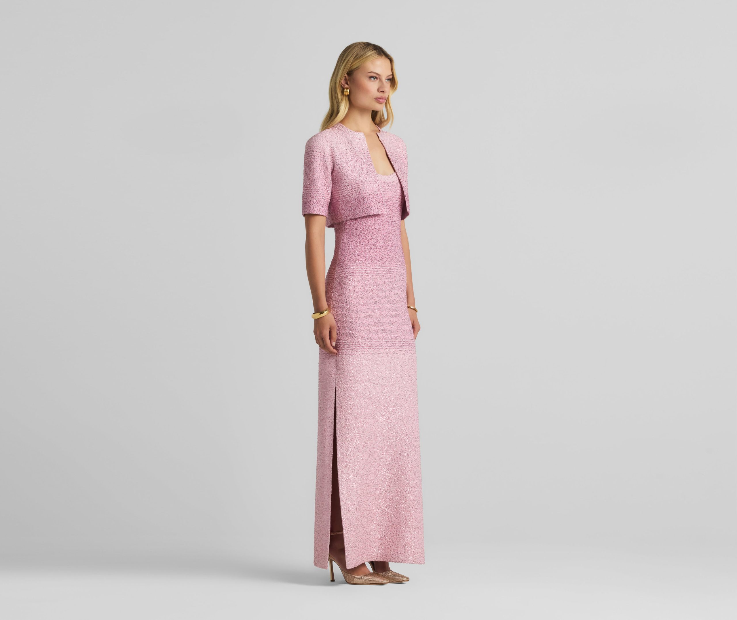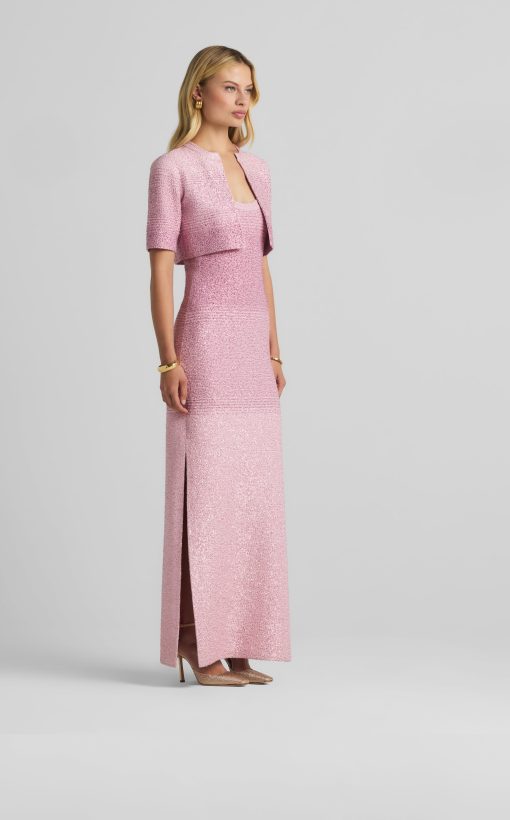 This cropped short sleeve jacket is the perfect evening topper in a simple short sleeves style with degrade sequins in a striped ombré finish.All Sales are Final. No Returns or Exchanges.