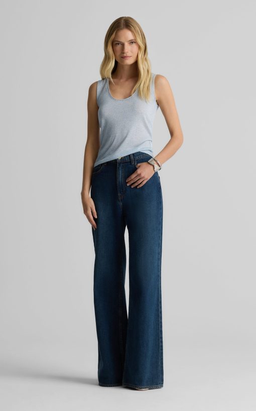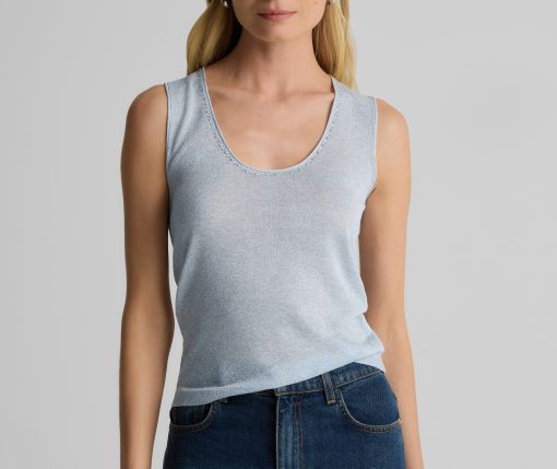 St.John Women’s Diana Shell In Metallic Knit | Blue Lagoon