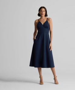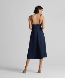 Sleek Stretch Gabardine meets luxe leather in this supremely wearable dress you’ll keep in rotation year-round. With its graceful v-neckline, nipped-in waist, and skirt that elegantly floats away from the body, the Emerson offers a flattering fit plus a bit of bold edge that shifts seamlessly from day to night.