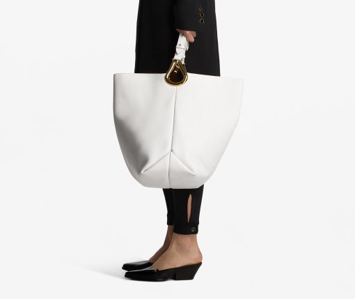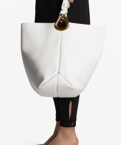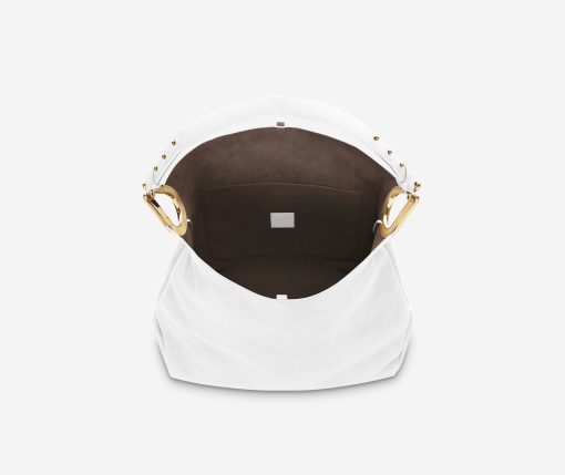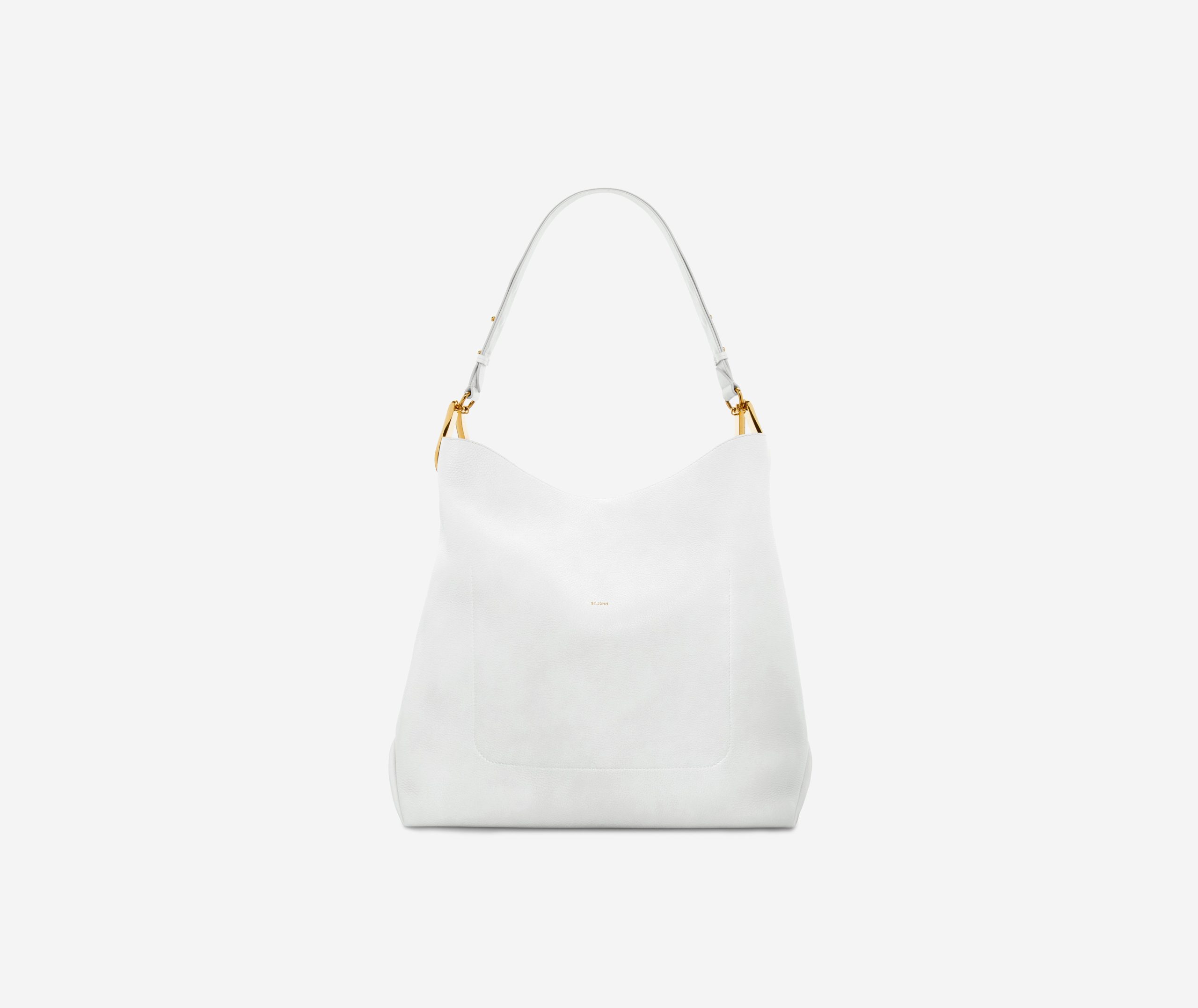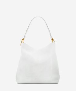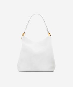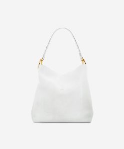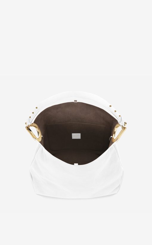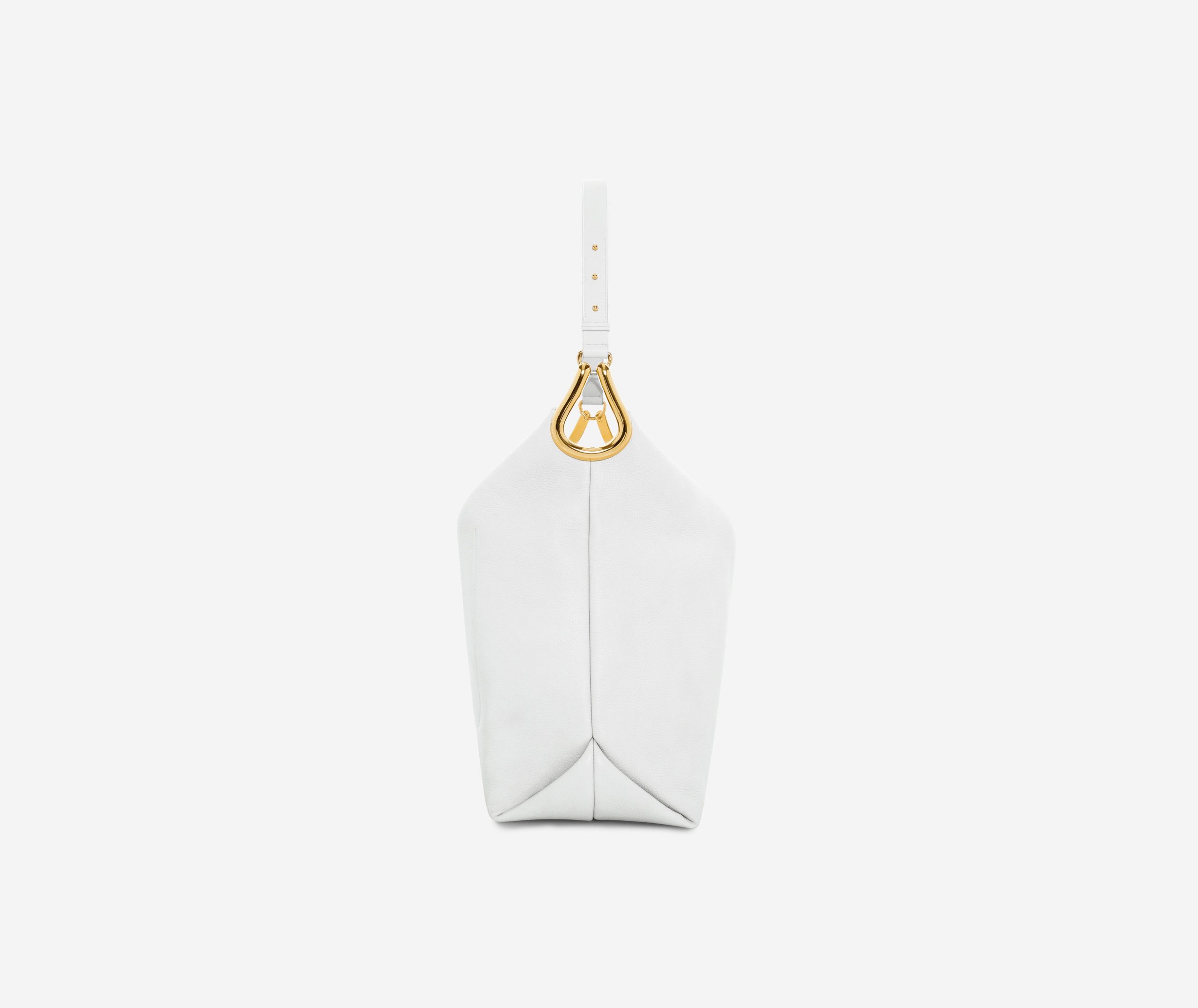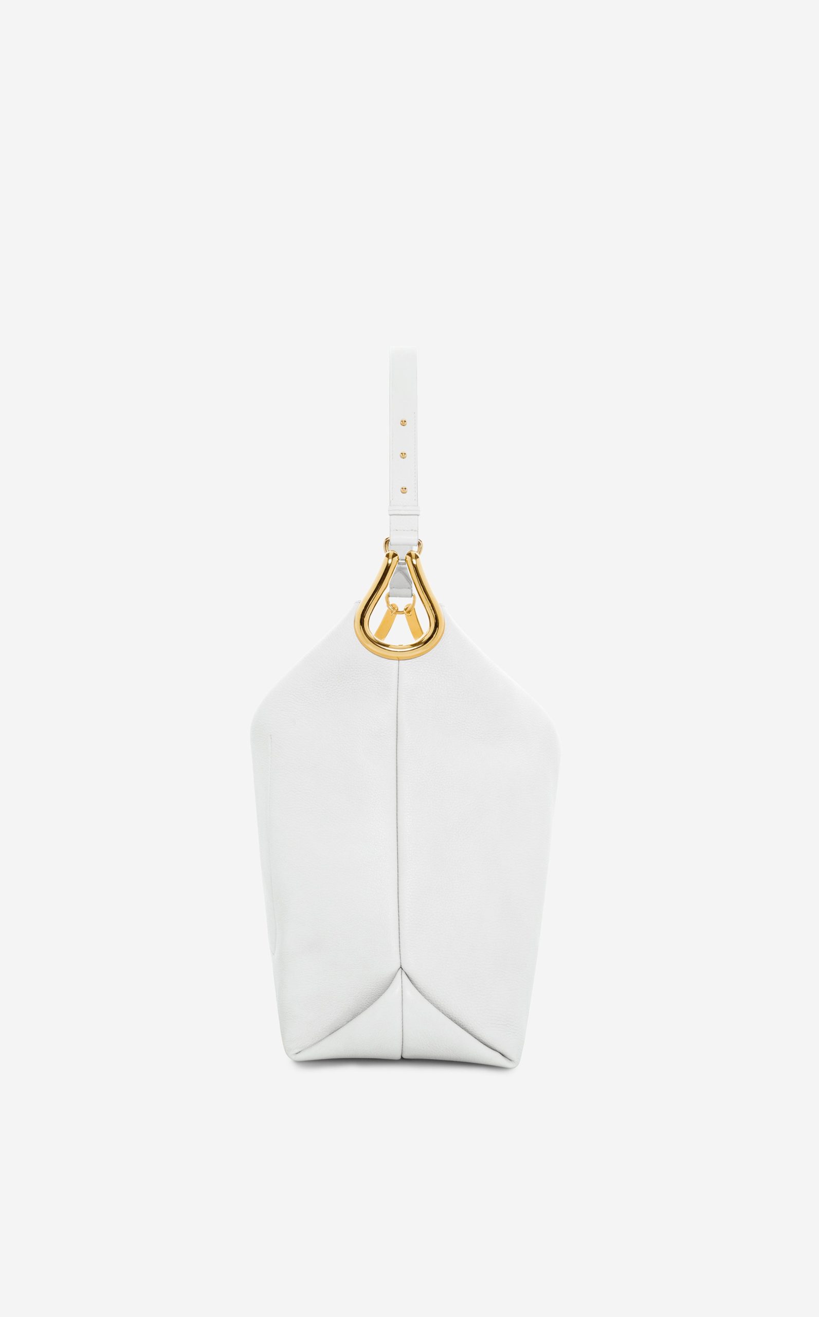 Leather hobo bag in grainy leather with notched top handle, signature loop design at sides, gold-tone accents, and interior side pocket. Modern, versatile and elevated; meet the perfect carryall in a roomy silhouette. Offers complimentary delivery and returns. Delivery and Return Policy