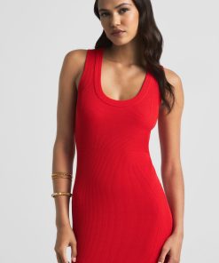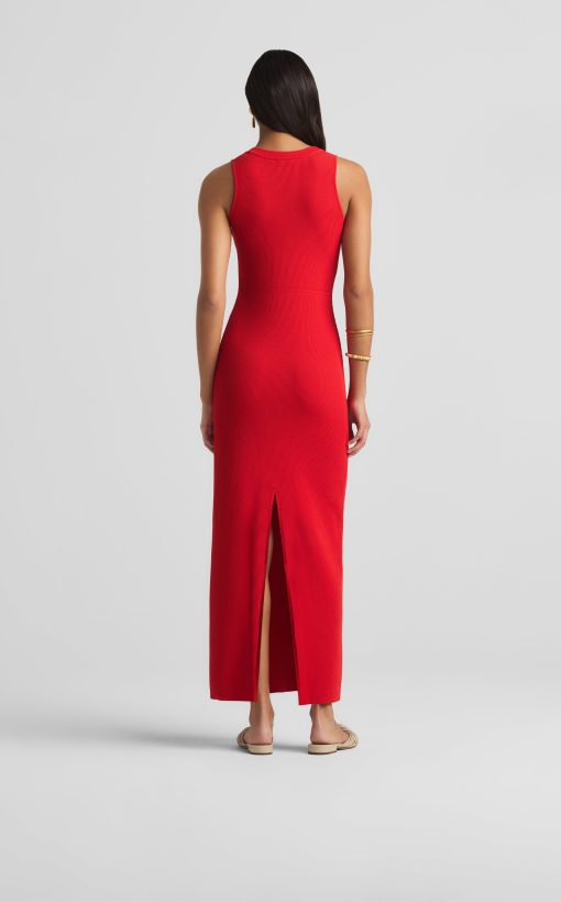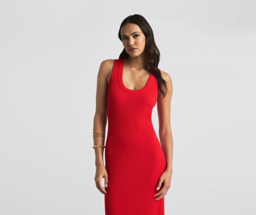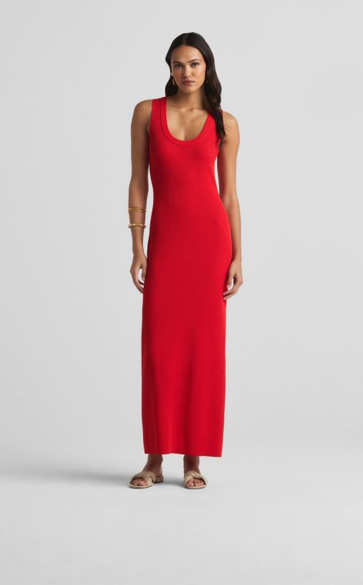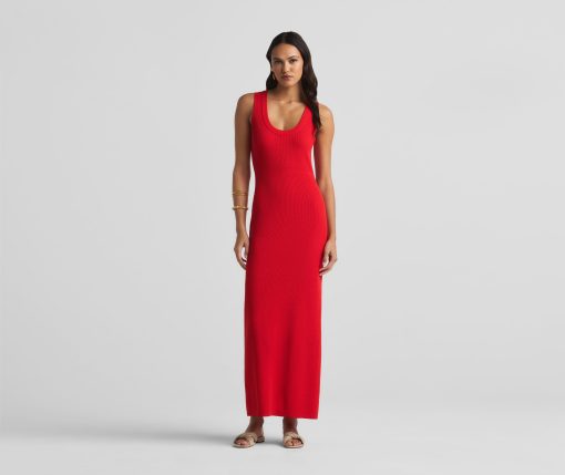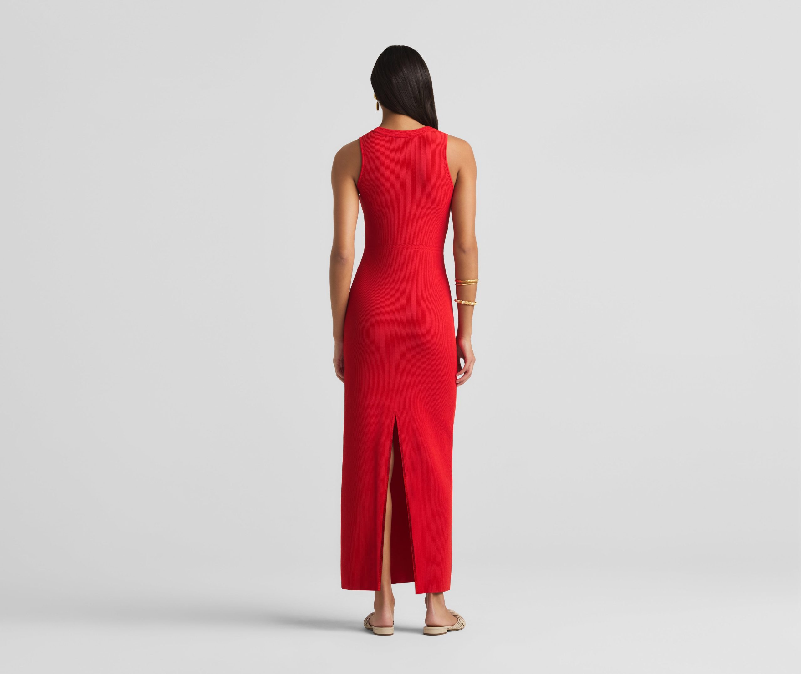 One of the Collection’s most versatile styles, this understated fine rib scoop neck sleeveless dress with a back slit easily dresses up or down.All Sales are Final. No Returns or Exchanges.