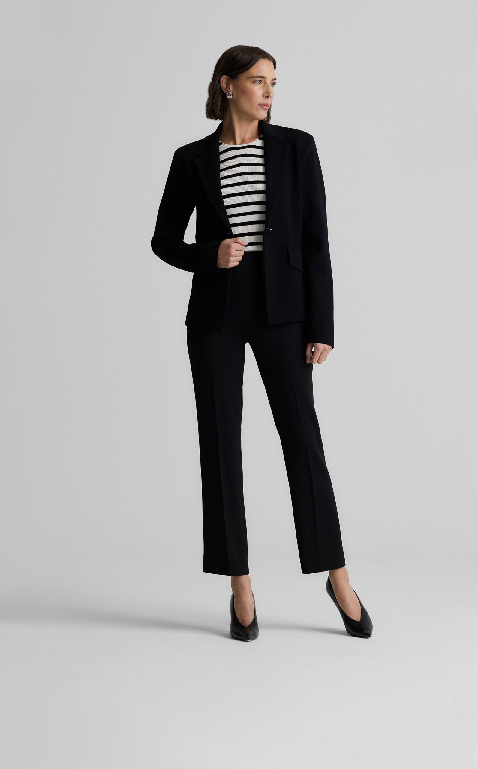 Cut from a luxurious Stretch Italian Viscose Blend, this expertly tailored, ankle-glazing pant moves effortlessly with you throughout the day—transitioning seamlessly from the office to after-hours cocktails without ever losing its polish.