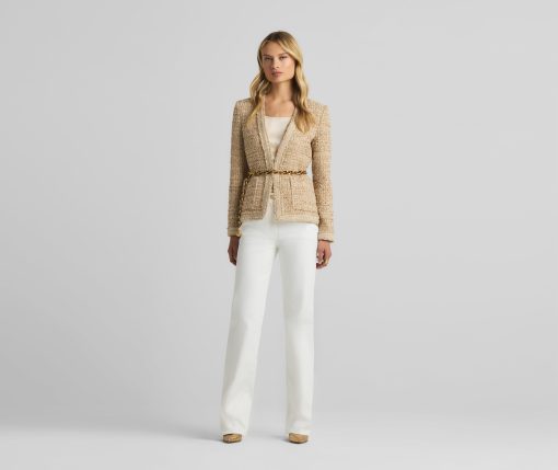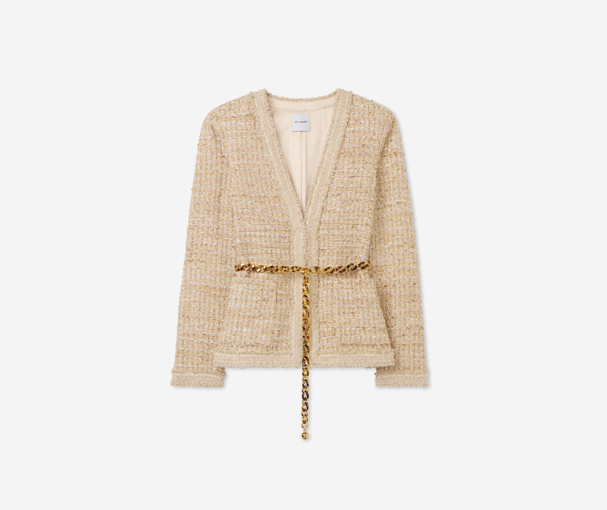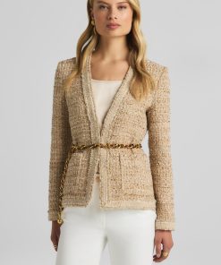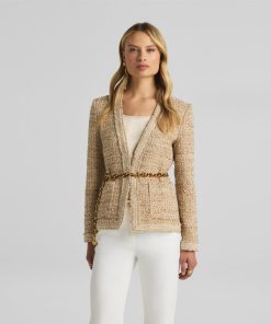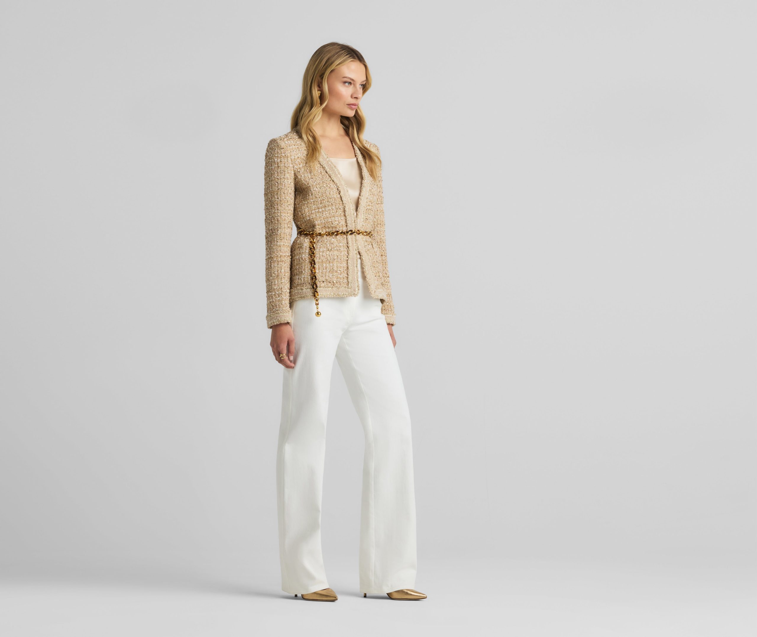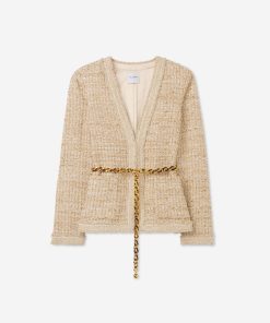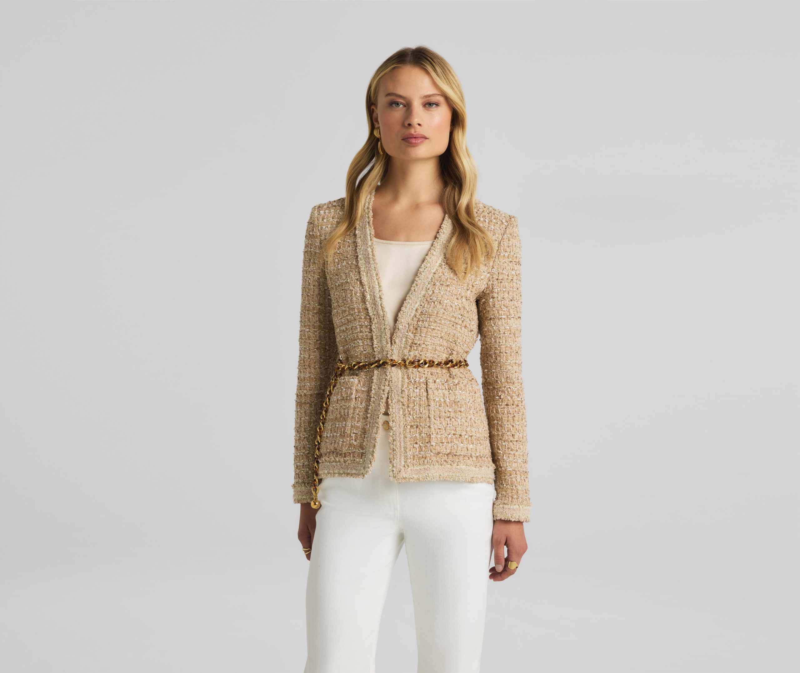 Designed with luxurious lifestyles in mind, the Josie expertly juxtaposes both classic and modern elements to fit seamlessly into your wardrobe. This expertly tailored Linden Tweed jacket boasts a sleek, waist-defining shape that layers beautifully over sheath dresses or fitted tops as well as a chain belt and fringe trim for vintage-inspired glamour.