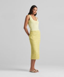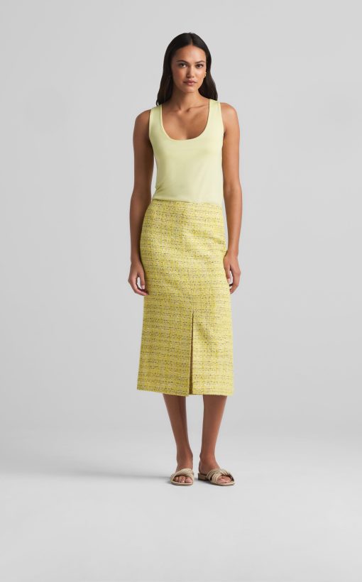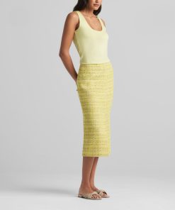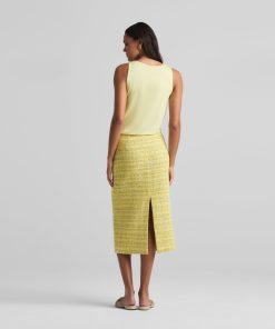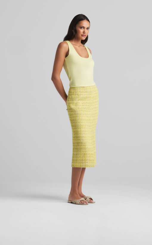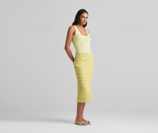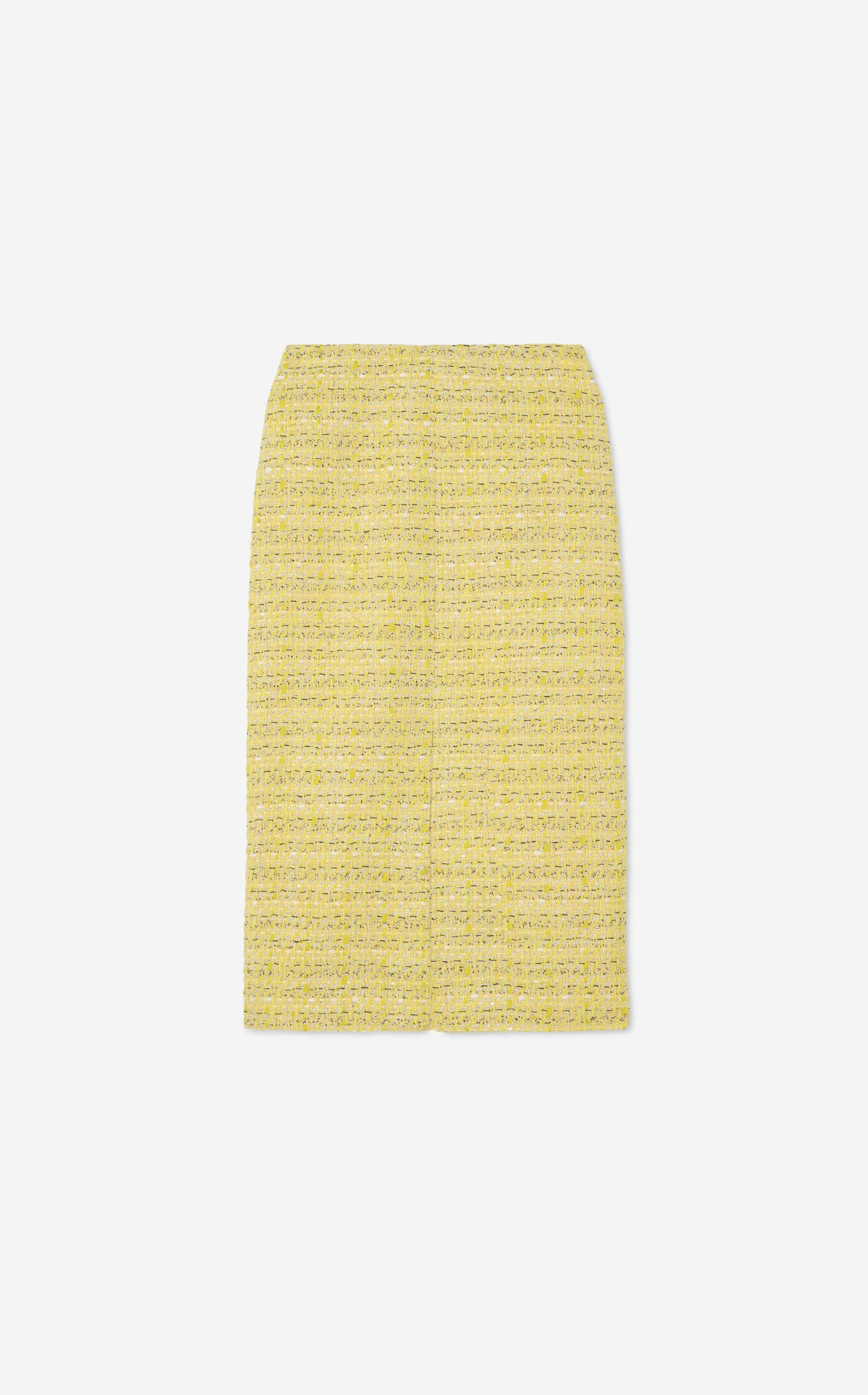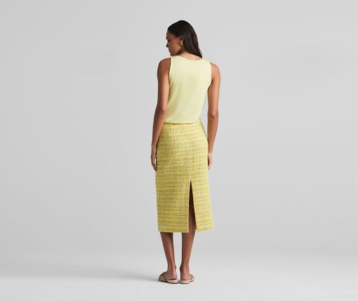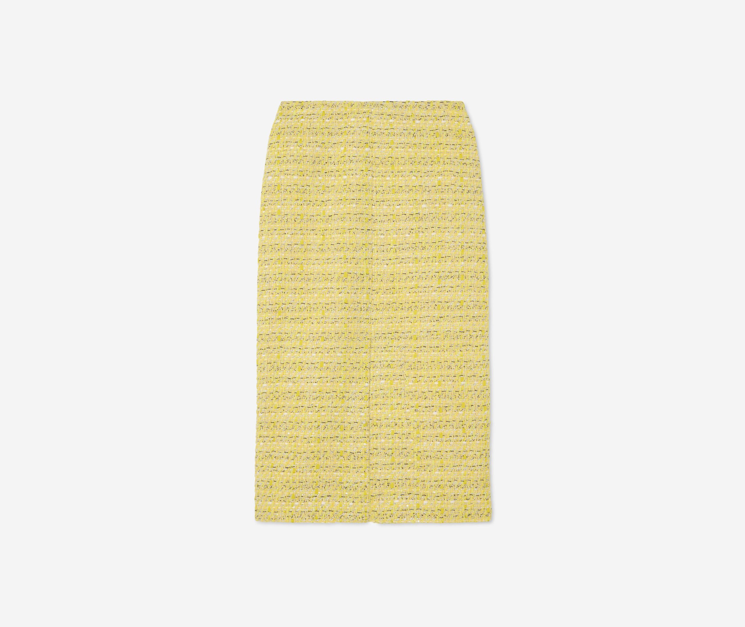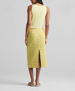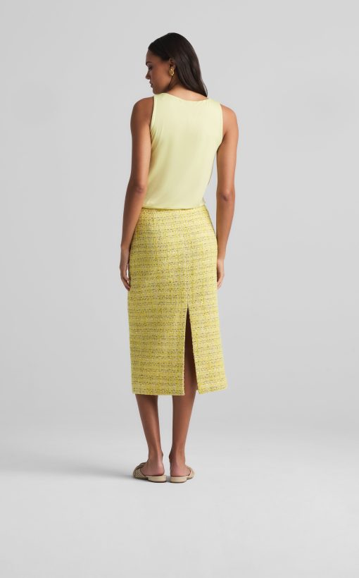 Intricately knit lurex tweed makes for a signature skirt in a straight, midi length cut with a zipper closure for the perfect fit.All Sales are Final. No Returns or Exchanges.