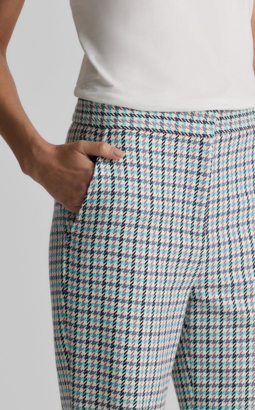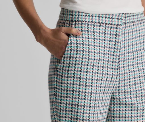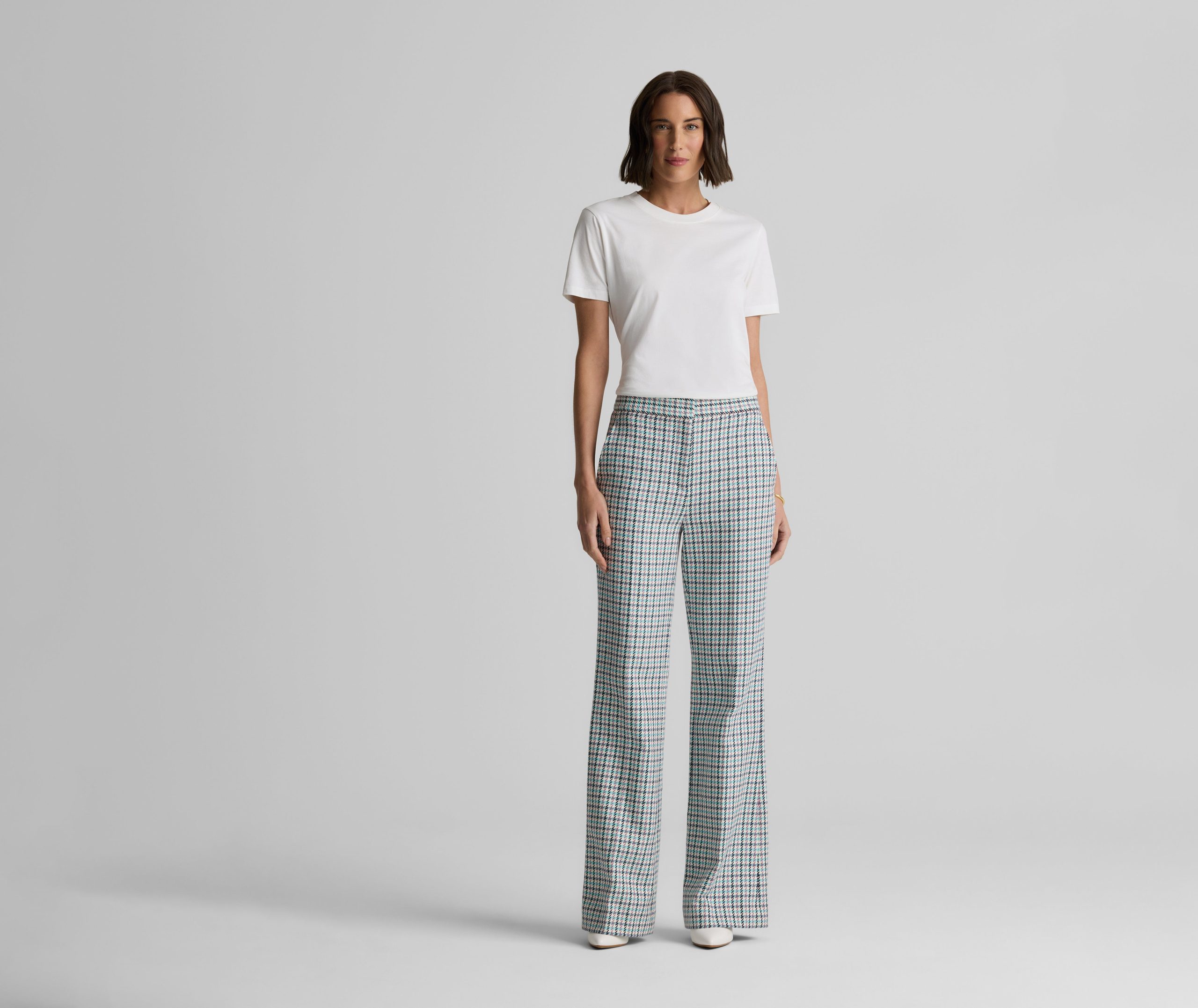 Heritage houndstooth gets a modern twist with the Logan Pant in a vibrant Tropical Blue/Ivory Multi palette. Made from a comfortable stretch fabric for effortless, all-day wear and designed with a clean waistband, slash pockets, and a slightly flared leg to create a crisp look, these flattering trousers can be mixed and matched with solid separates to let the pattern pop, or worn with our Parker Jacket or Sloane top for the ultimate coordination.