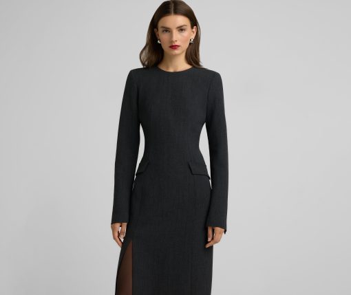 St.John Women’s Long Sleeve Pinstripe Dress | Shadow