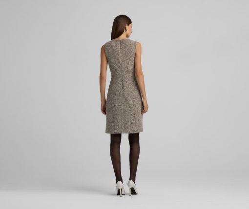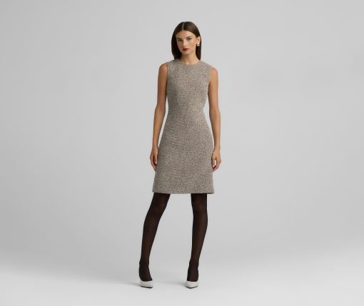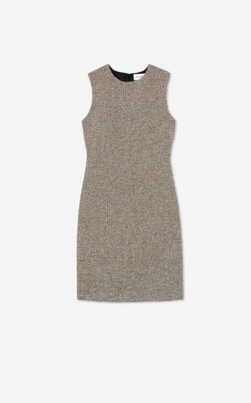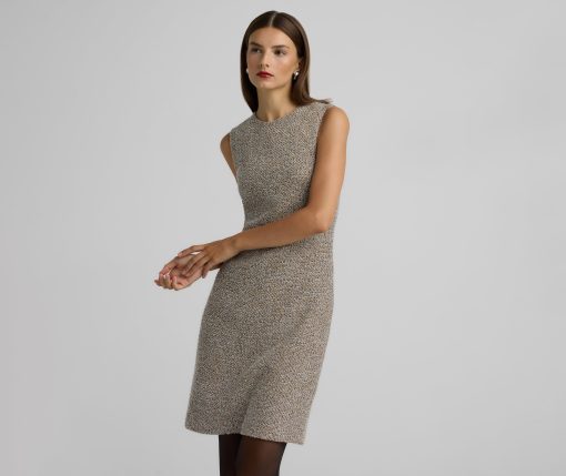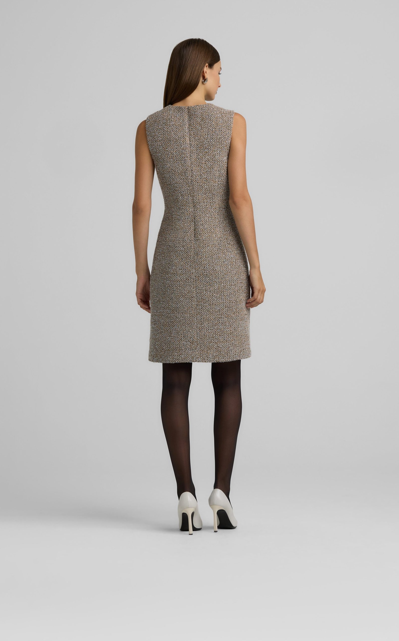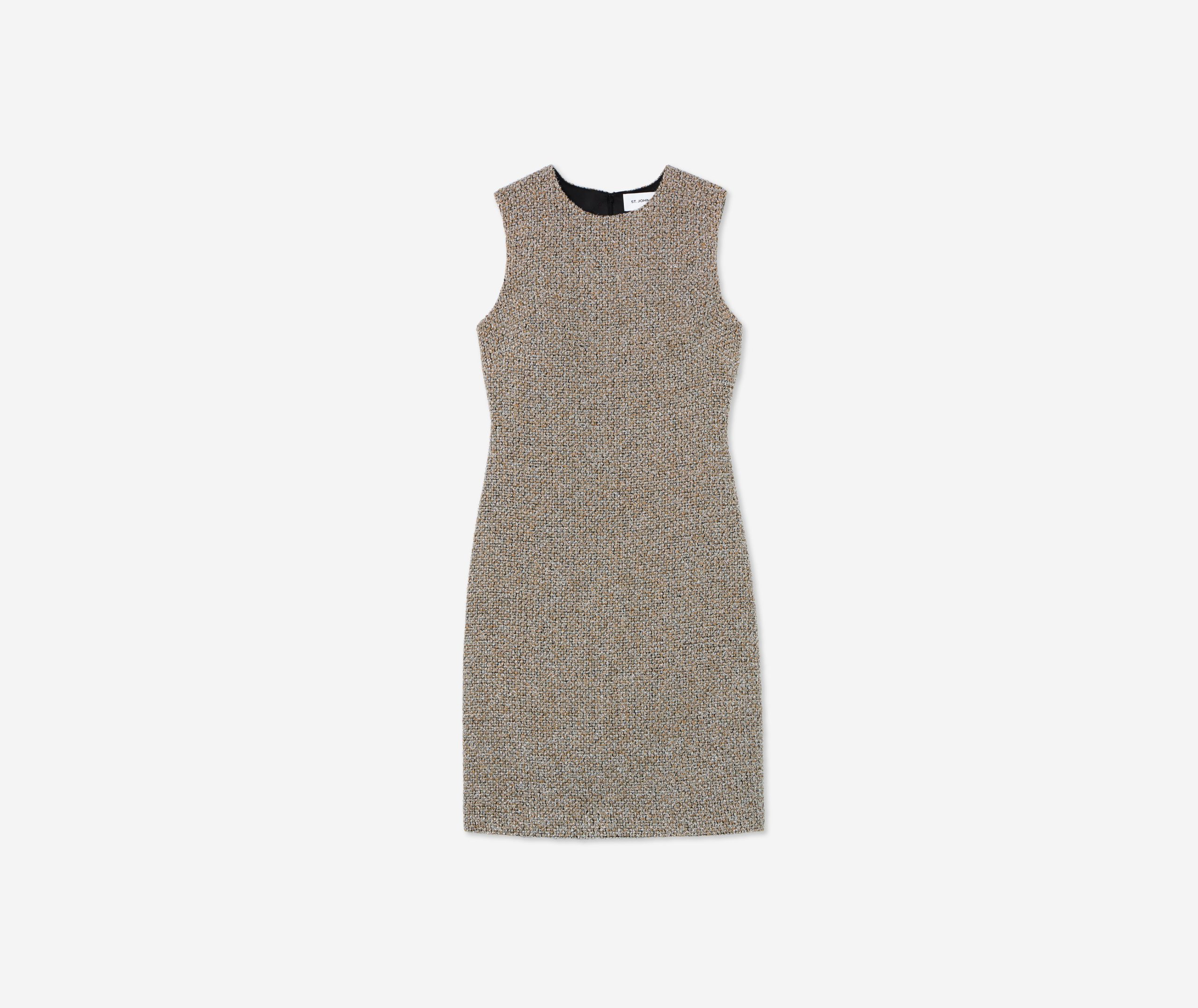 This lurex eyelash tweed sleeveless dress brings texture to a simple, timeless silhouette, tailored for the perfect fit and complete with a back zip.All Sales are Final. No Returns or Exchanges.