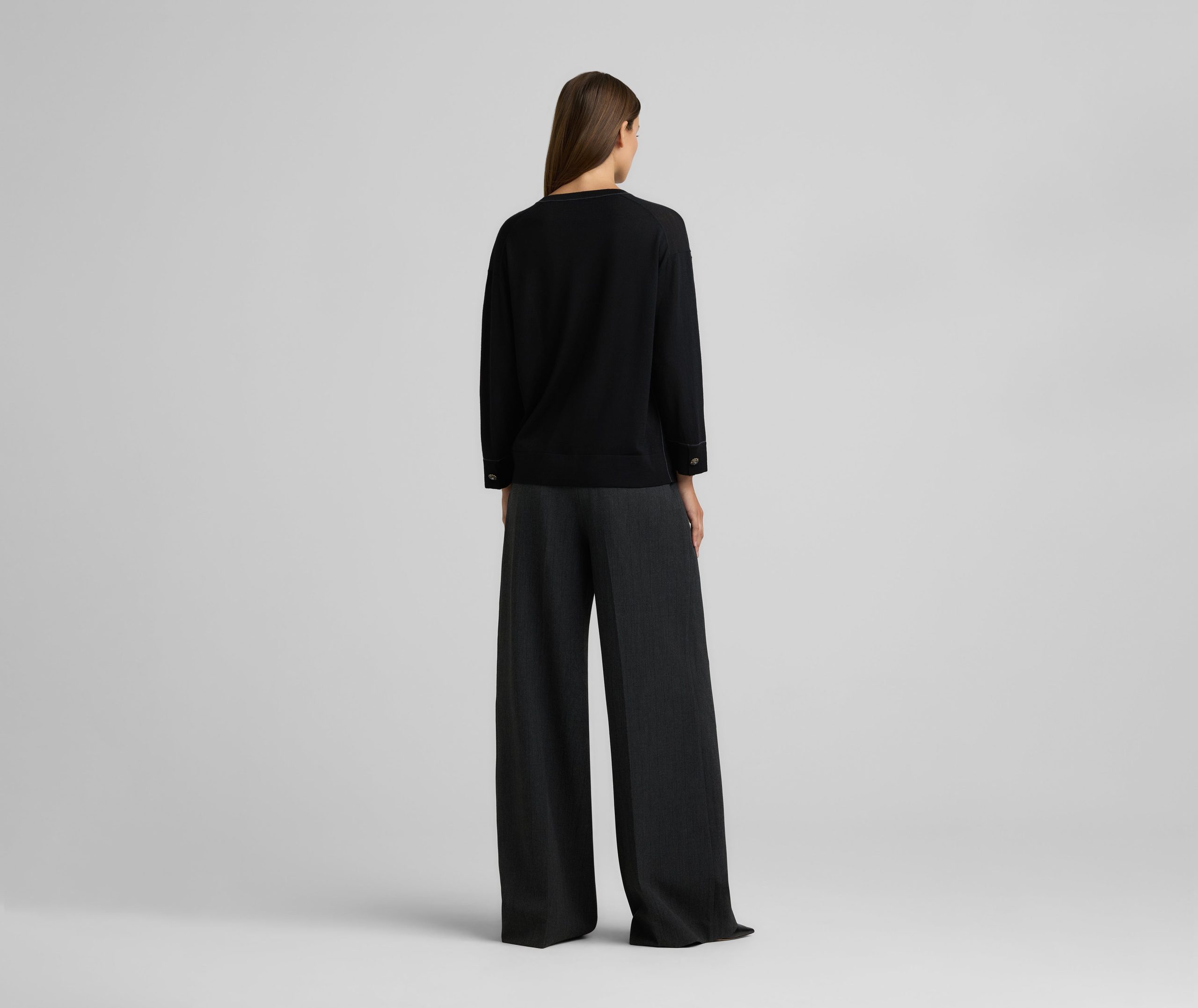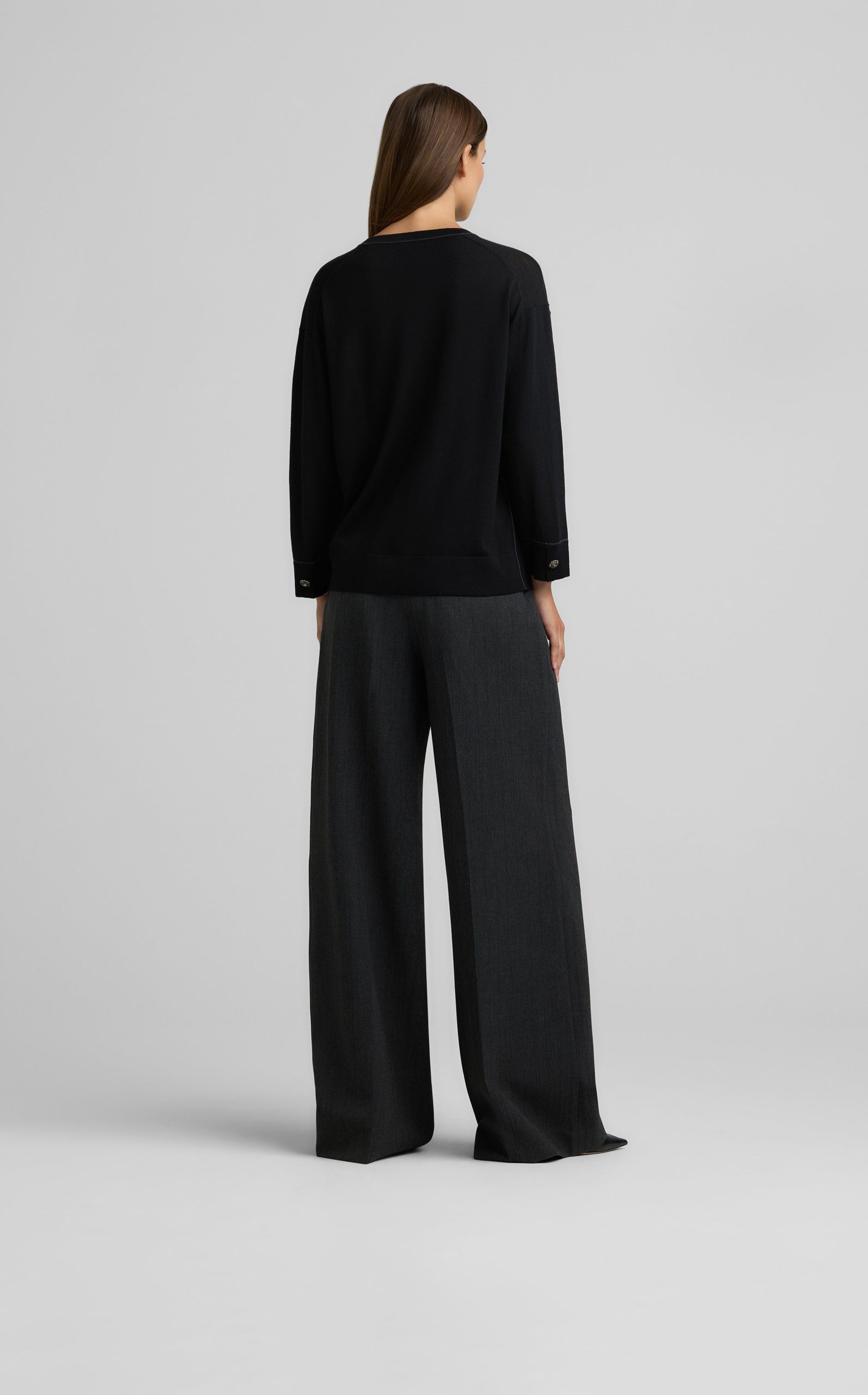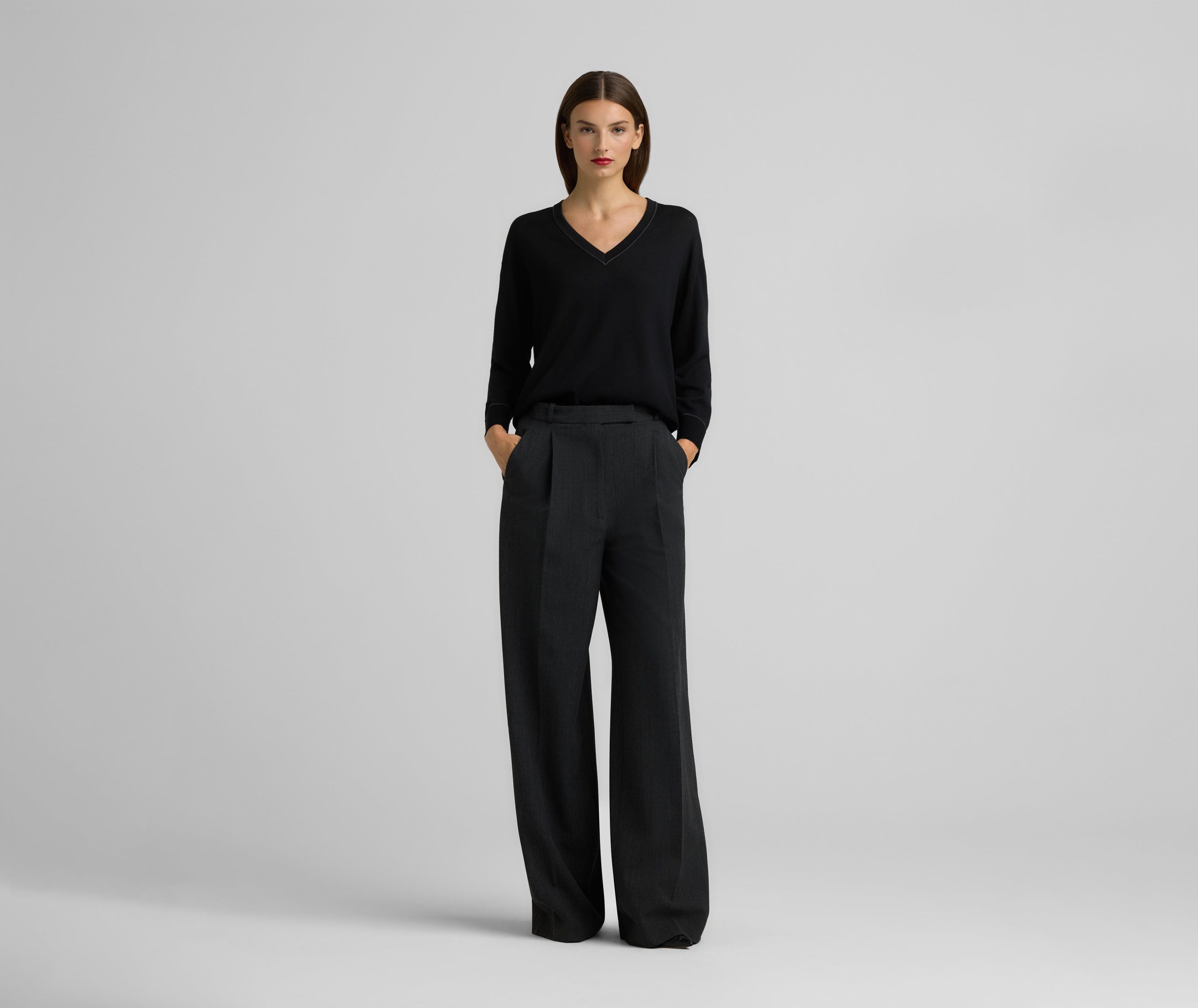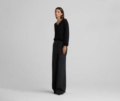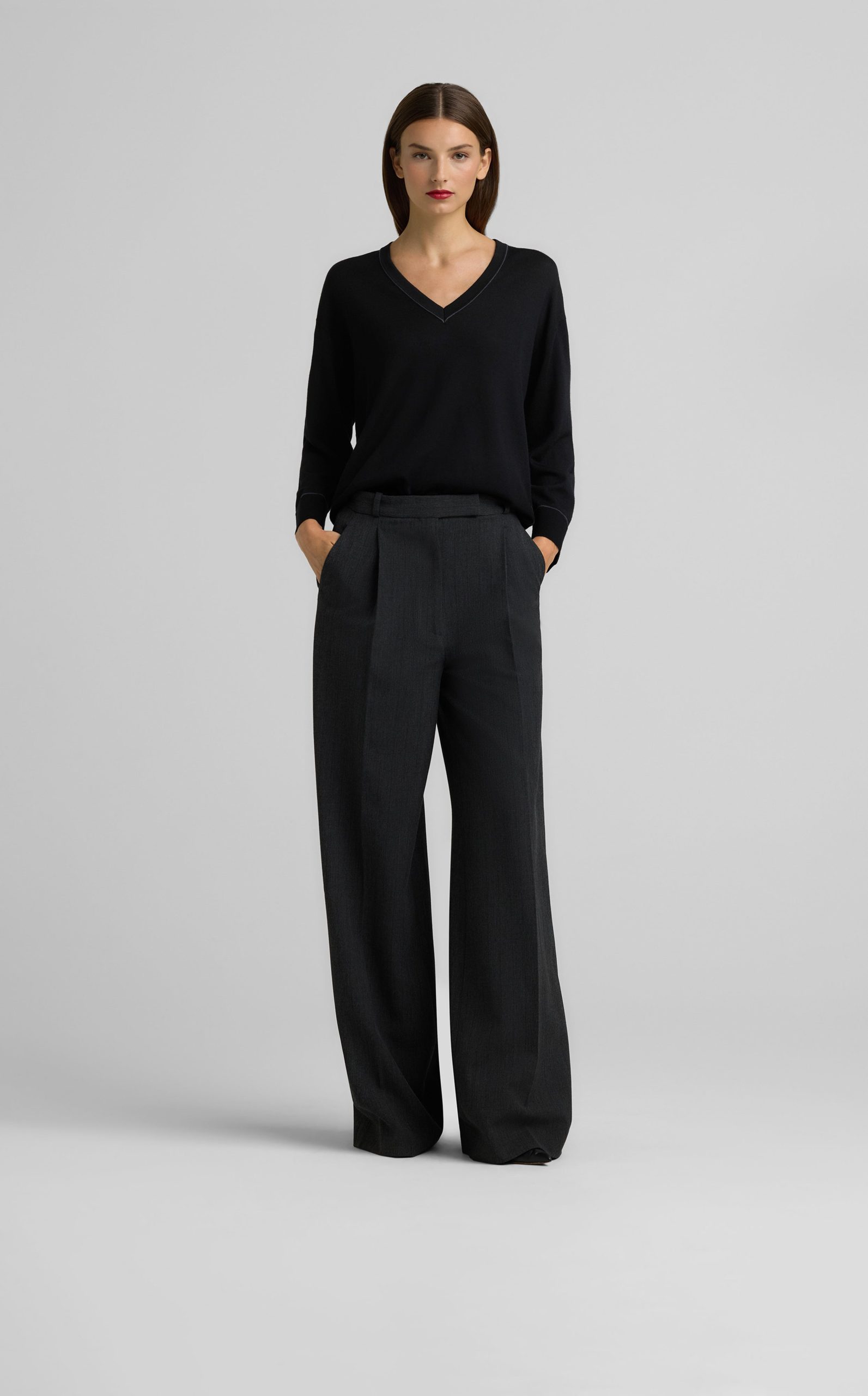 An effortlessly cool relaxed fit sets the tone for this staple V-neck sweater with accented trims, knit in Merino wool for a soft and warm fit.All Sales are Final. No Returns or Exchanges.