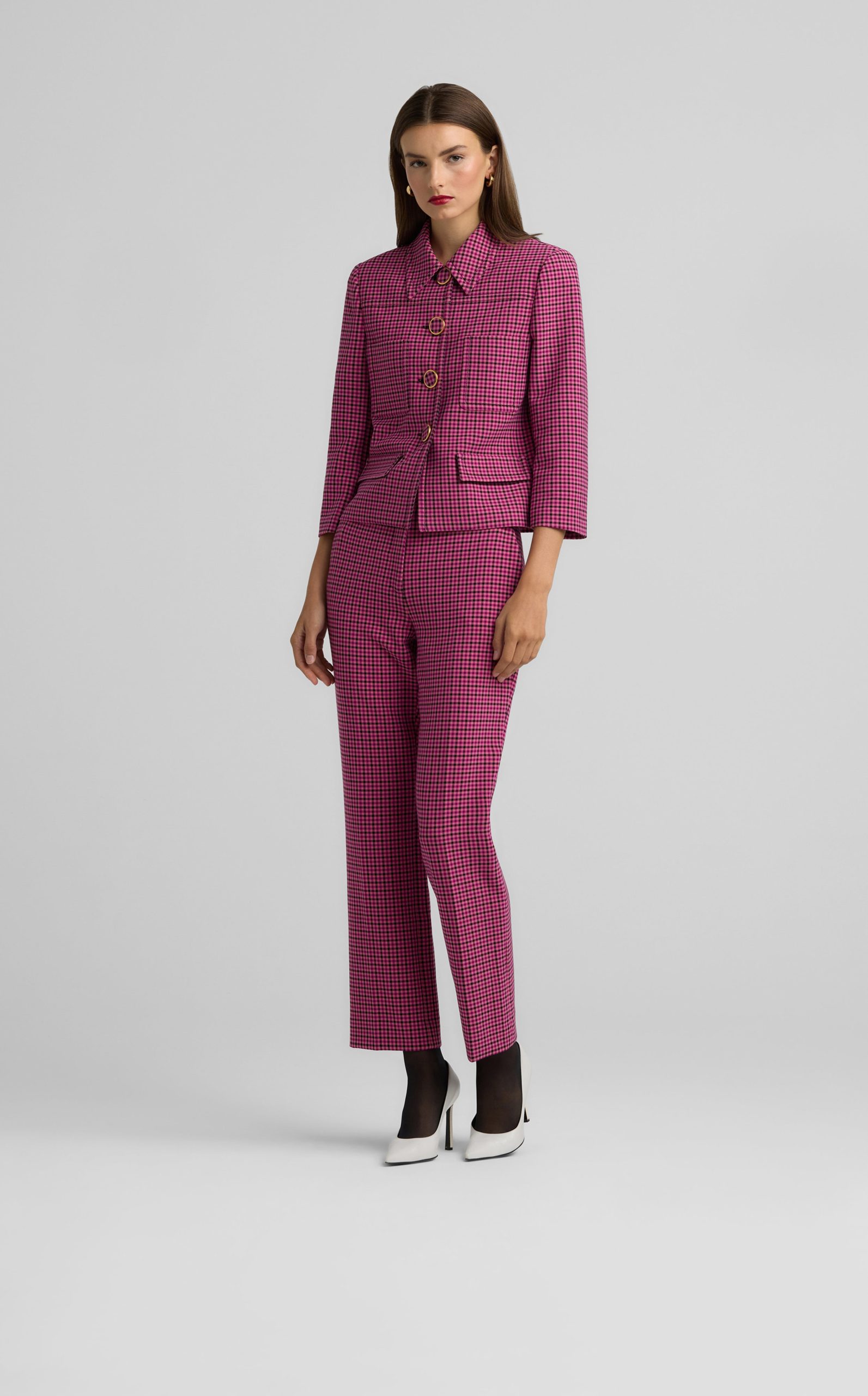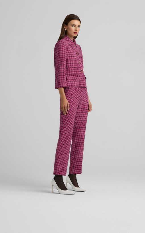 Bright hues liven up a mini plaid print in this stretch pant with a flat front and ankle length for a playful pop of color in any look.All Sales are Final. No Returns or Exchanges.