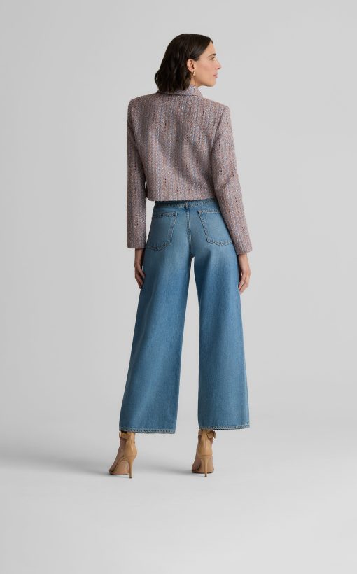 With its smart, sophisticated silhouette, this tweed jacket makes an elegant addition to any modern woman’s wardrobe, while its bejeweled buttons and subtly sparkling finish add a dose of dazzle that takes it easily into the evening.