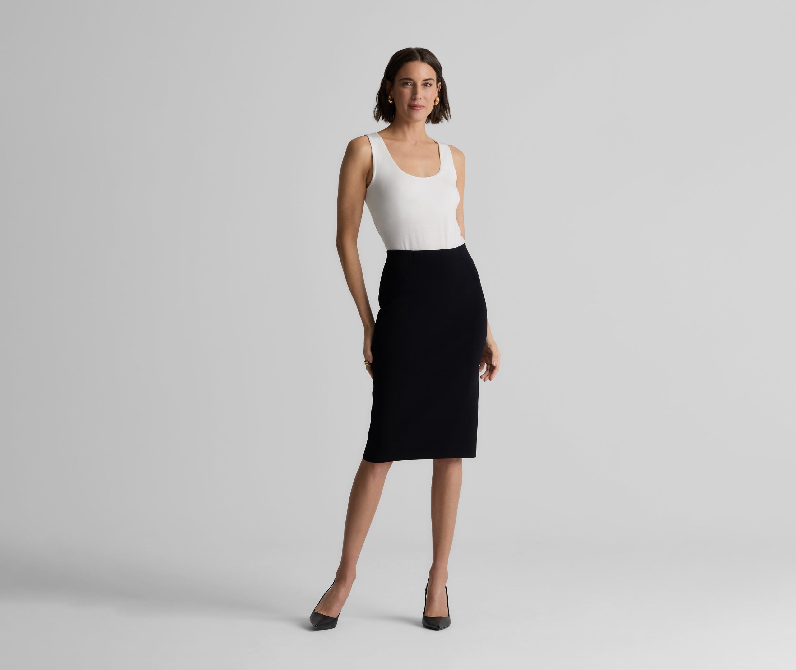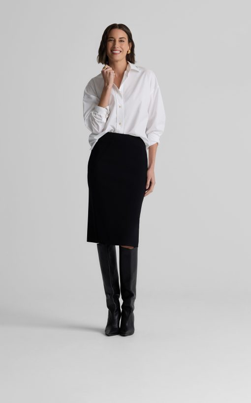 Crafted in our signature Santa Roma knit, the Nina Skirt combines structure with stretch for a sleek, flattering fit. The clean, minimalist silhouette moves gracefully with you, offering both comfort and sophistication in one essential piece.From workdays to weekends, it pairs effortlessly with your wardrobe, adding a quiet touch of refinement.