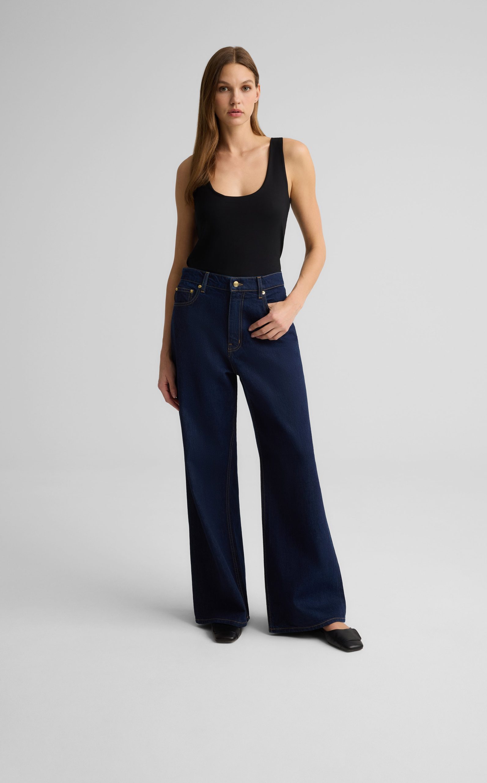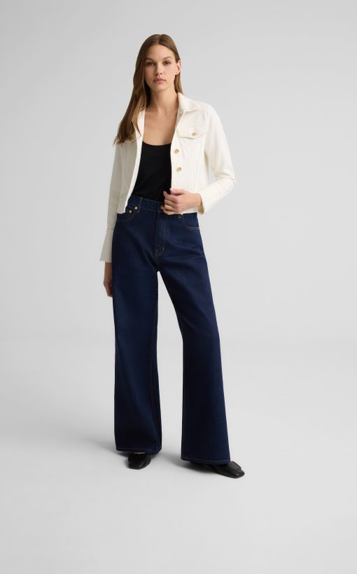 Perhaps the most flattering denim ever, this just-dark-enough wide leg jean is guaranteed to add inches to your silhouette.