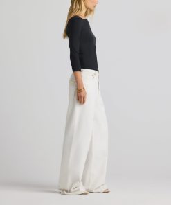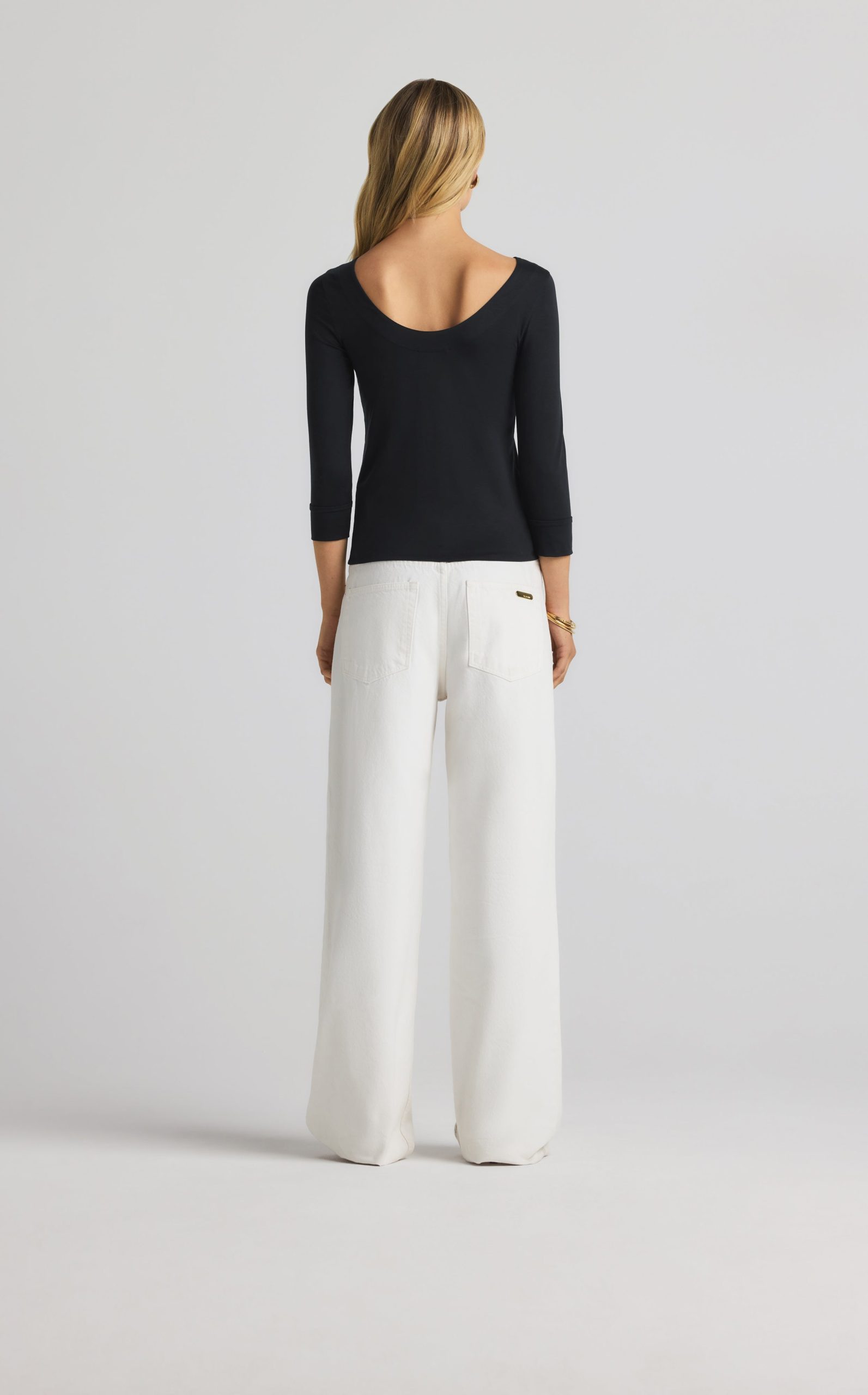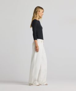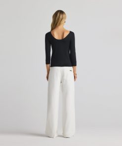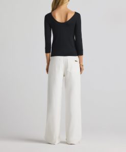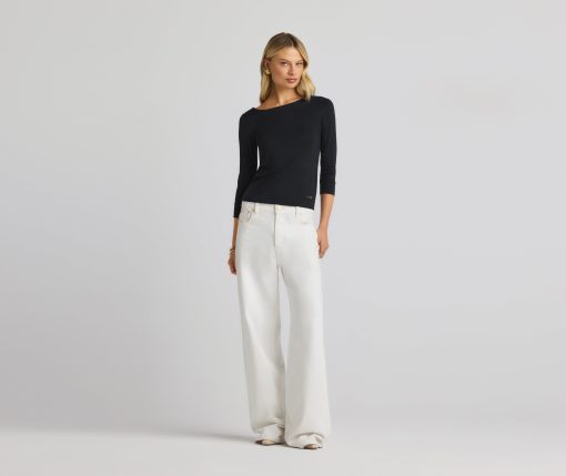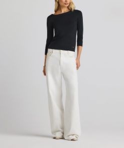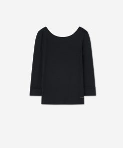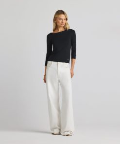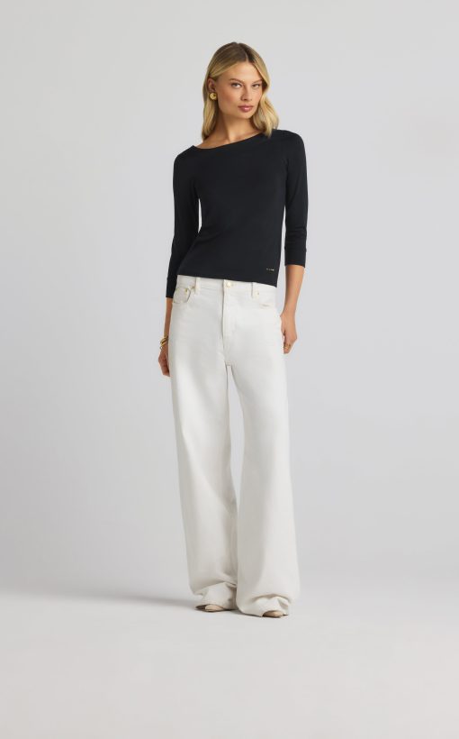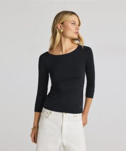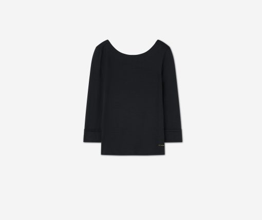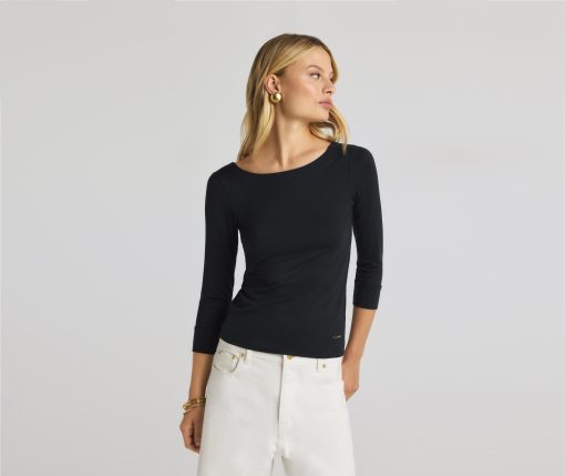 The chicest of classics, this simple bateau neck polished jersey top features 3/4 sleeves and a subtle St. John logo.