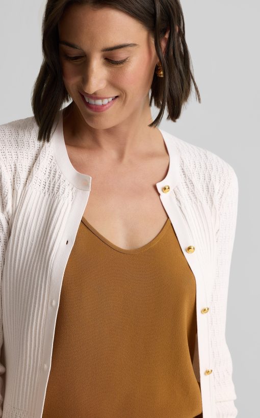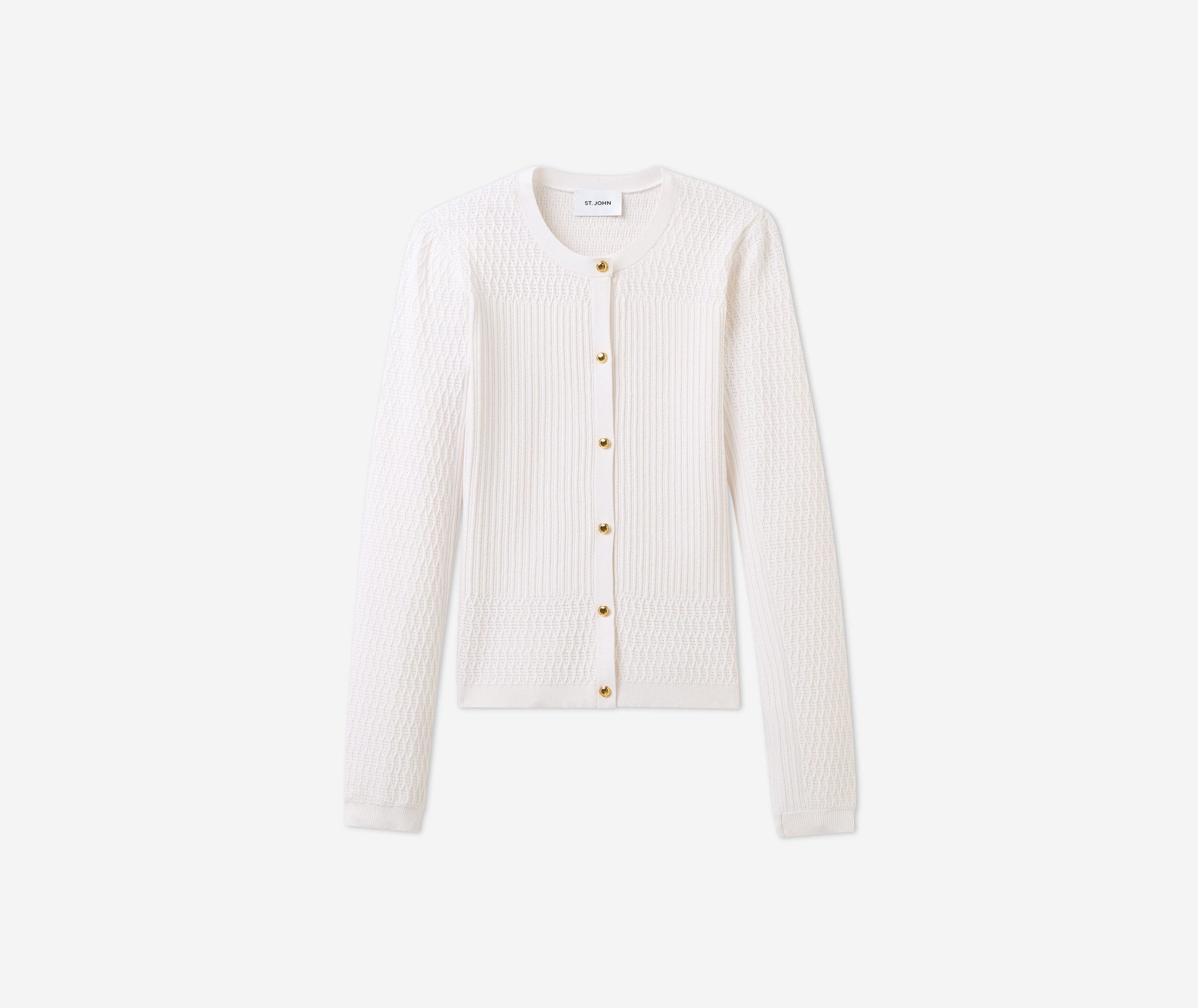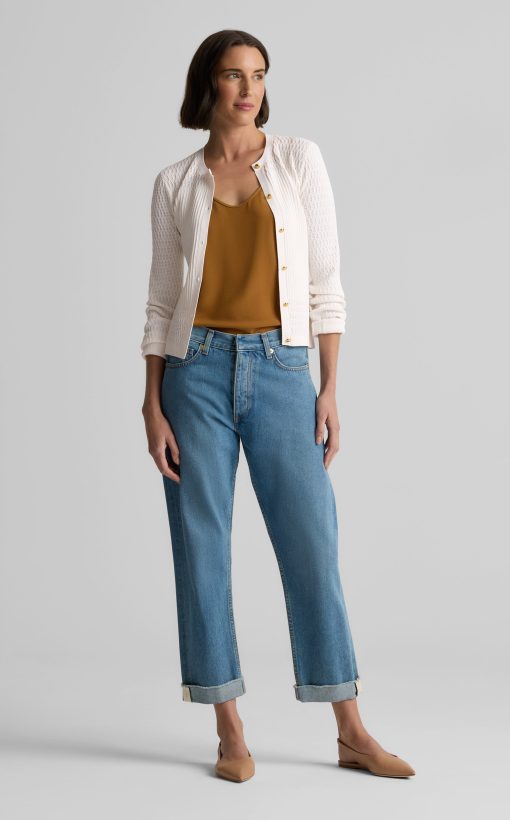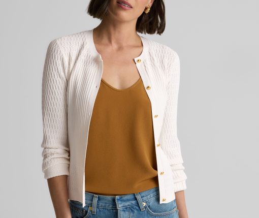Timeless enough to fit seamlessly into every wardrobe, yet touched with decorative details that make it a standout, the River possesses all the polish of a classic cardigan—and then some. A crew neckline, set-in straight sleeves, and slim fit offer a crisp, clean look while the subtle texture and embellished buttons elevate this sweater well beyond other basics.