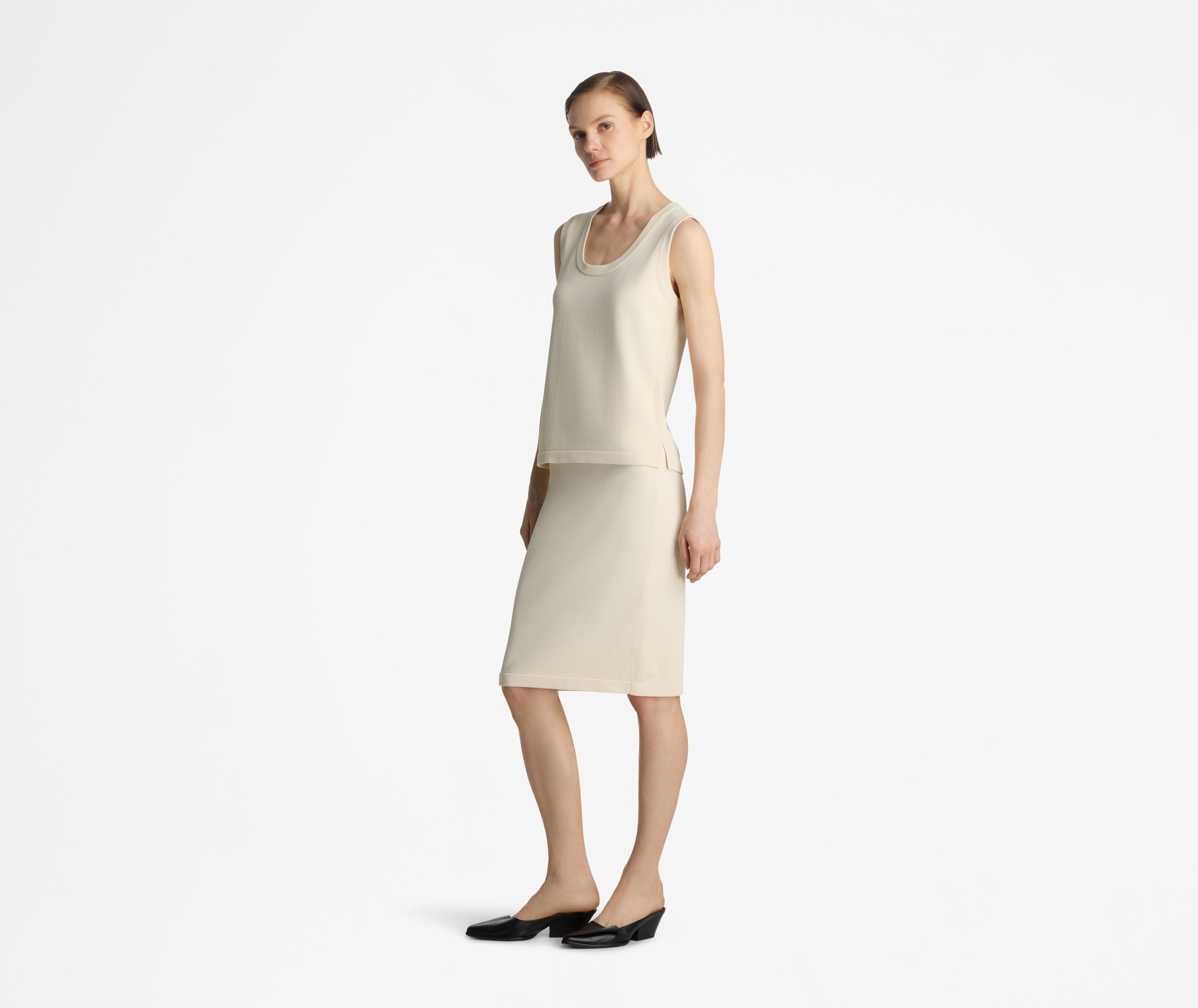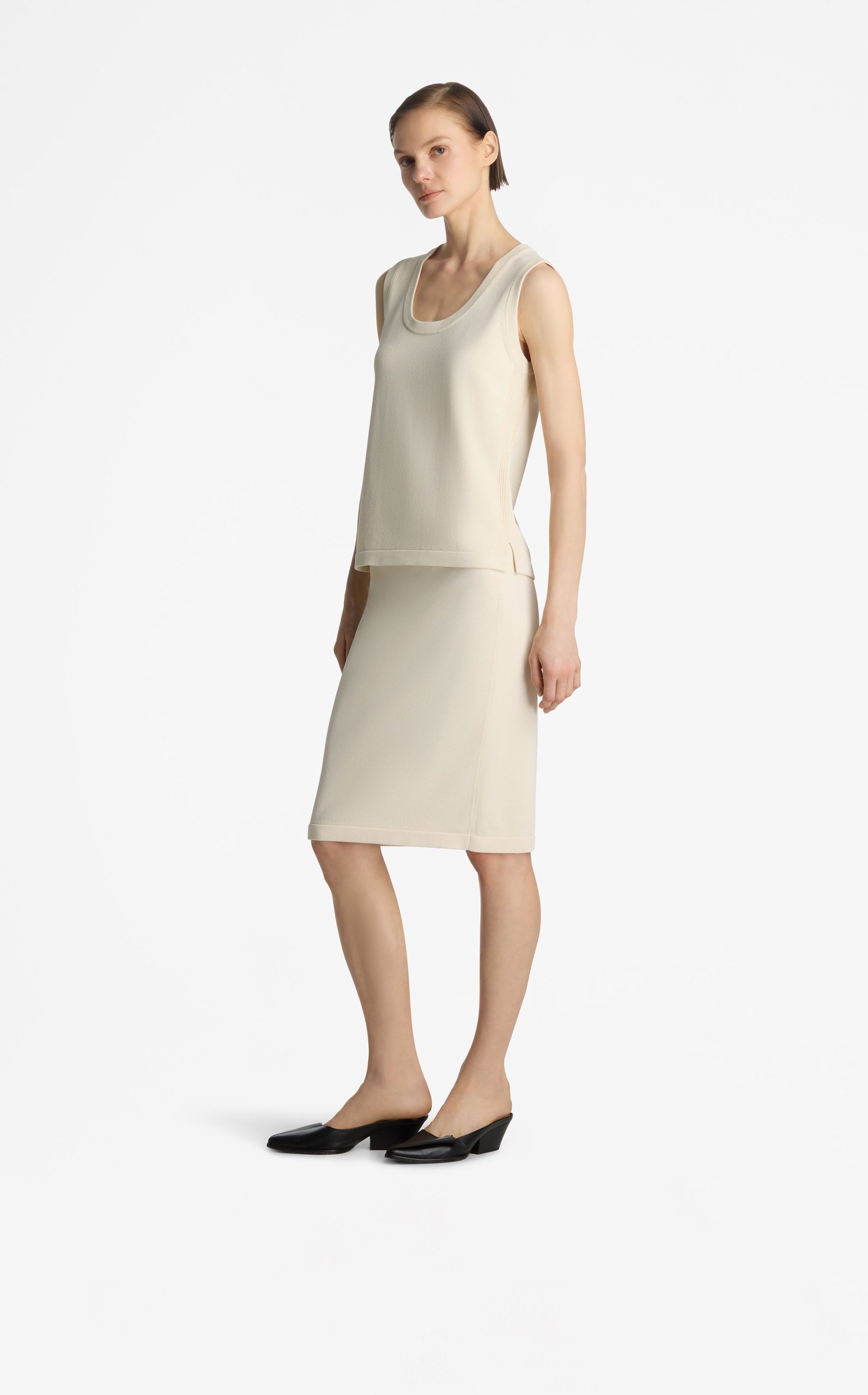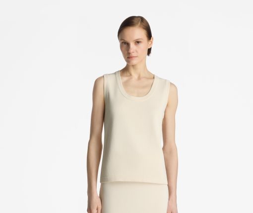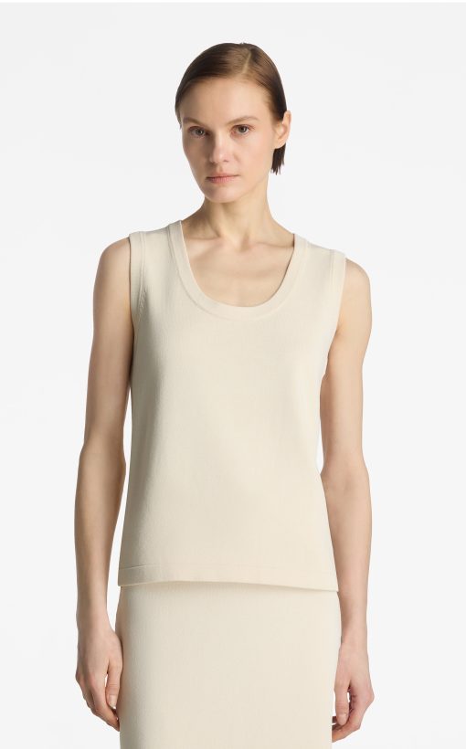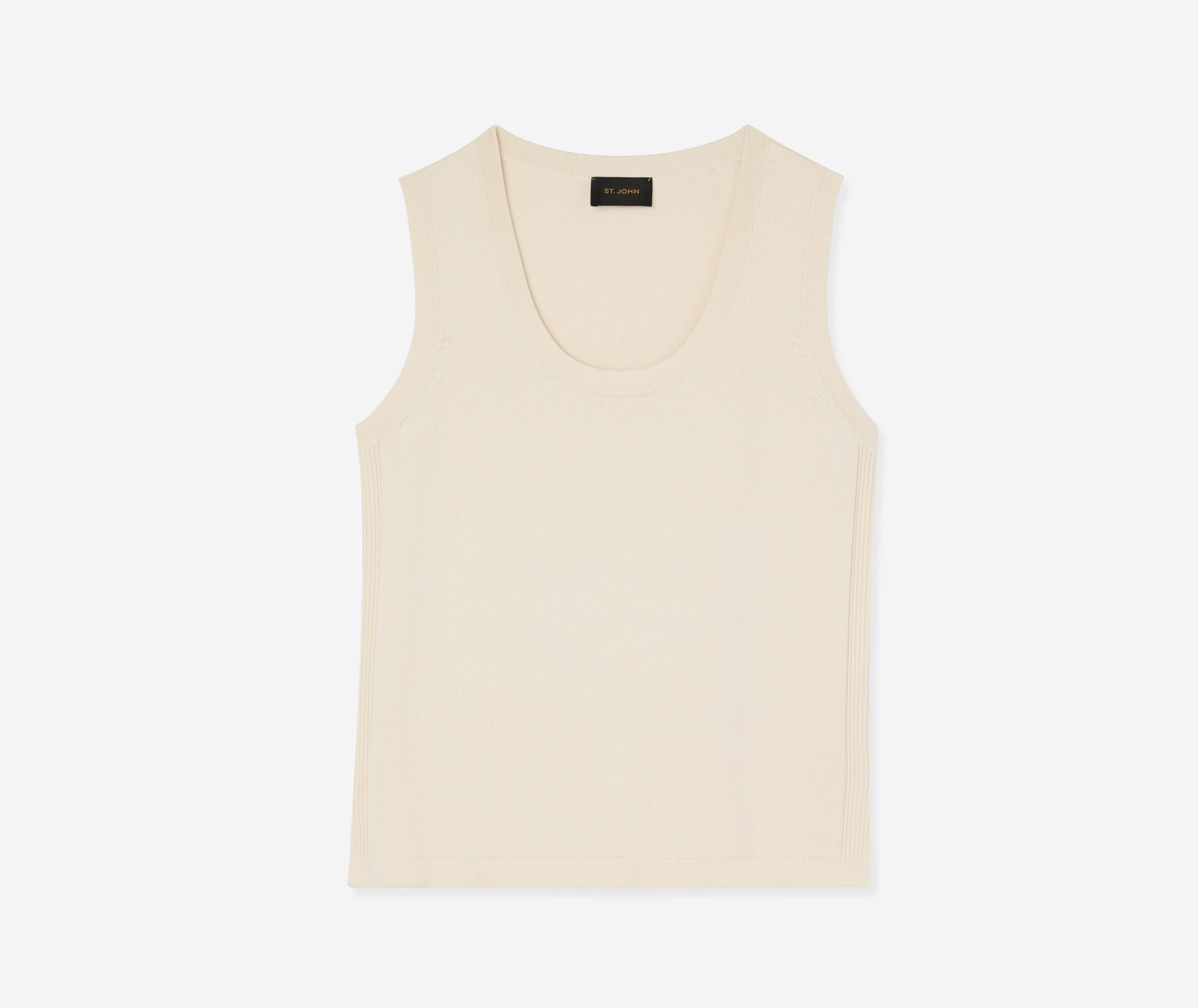 An essential scoop neck shell is crafted in new Santiago Knit, the must-have seasonless basic that stuns alone or layers with any look.