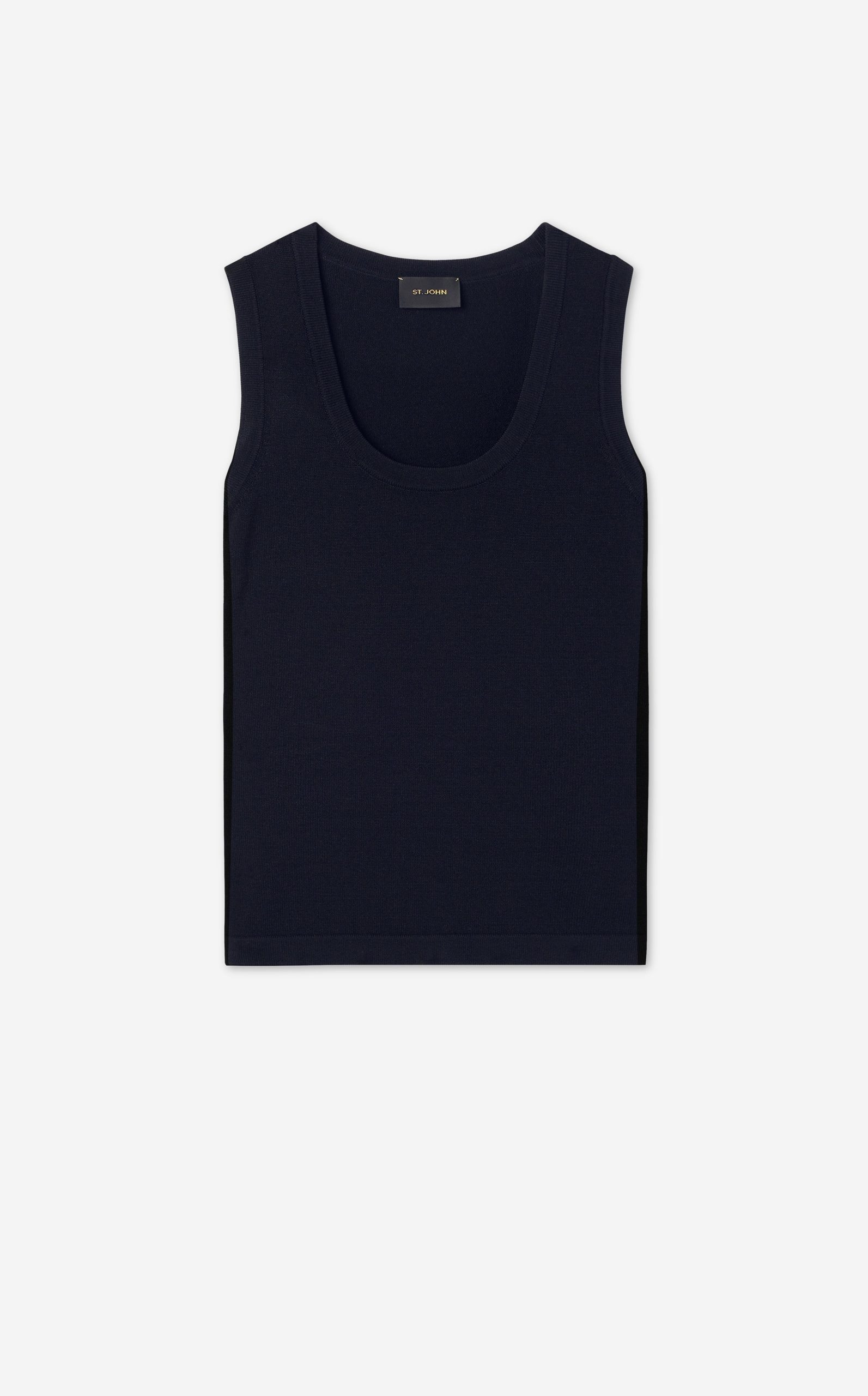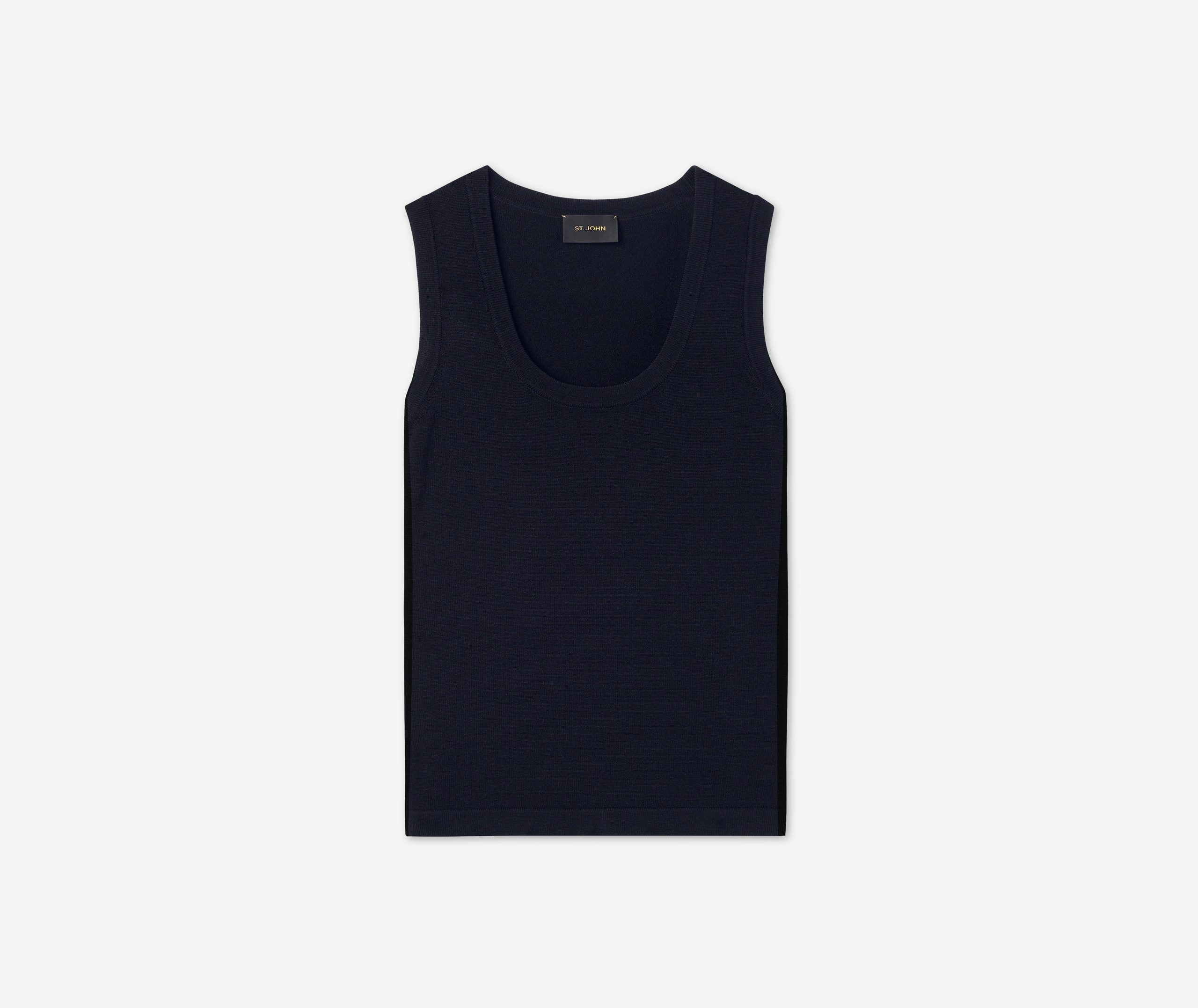 An essential scoop neck shell is crafted in new Santiago Knit, the must-have seasonless basic that stuns alone or layers with any look.