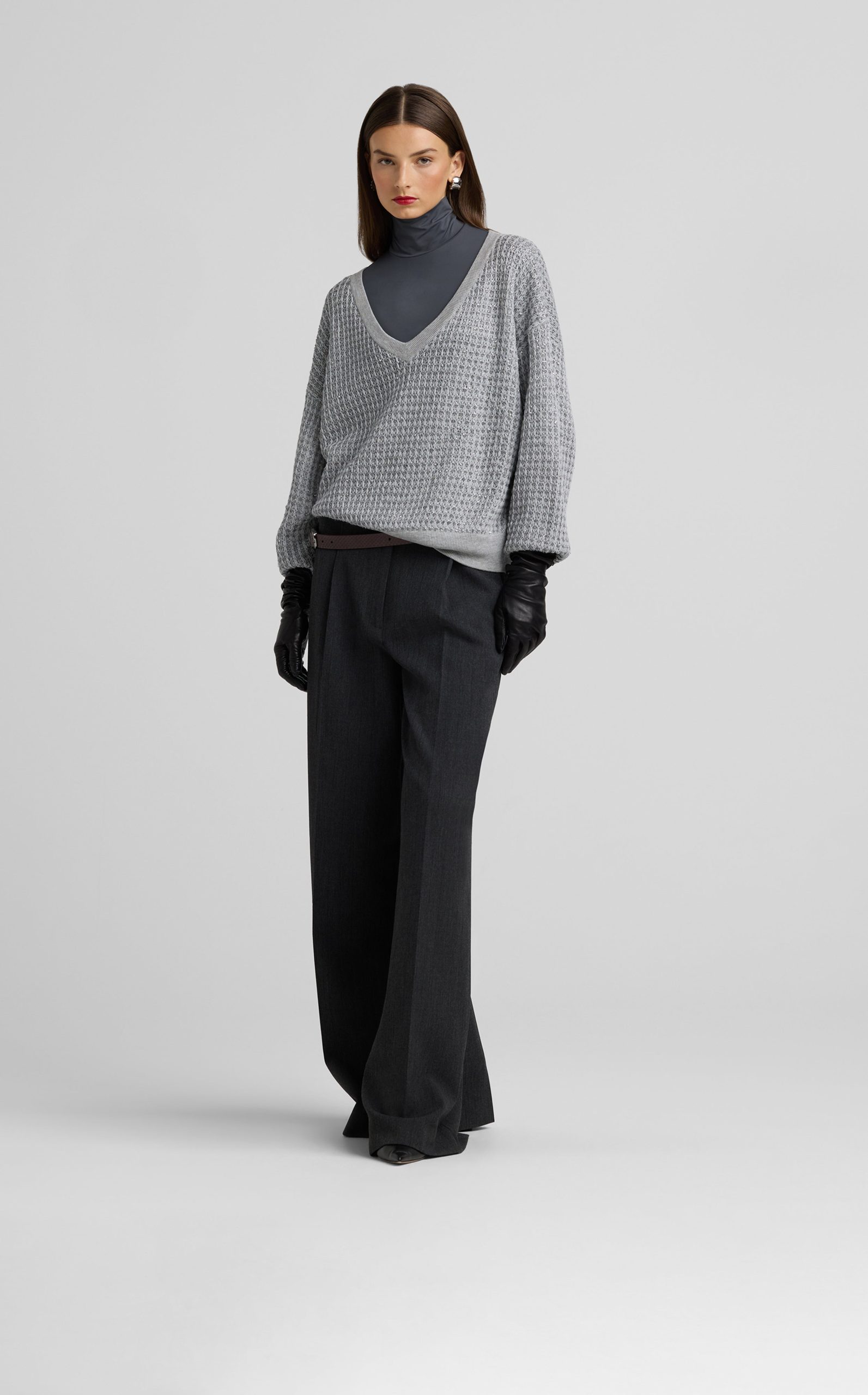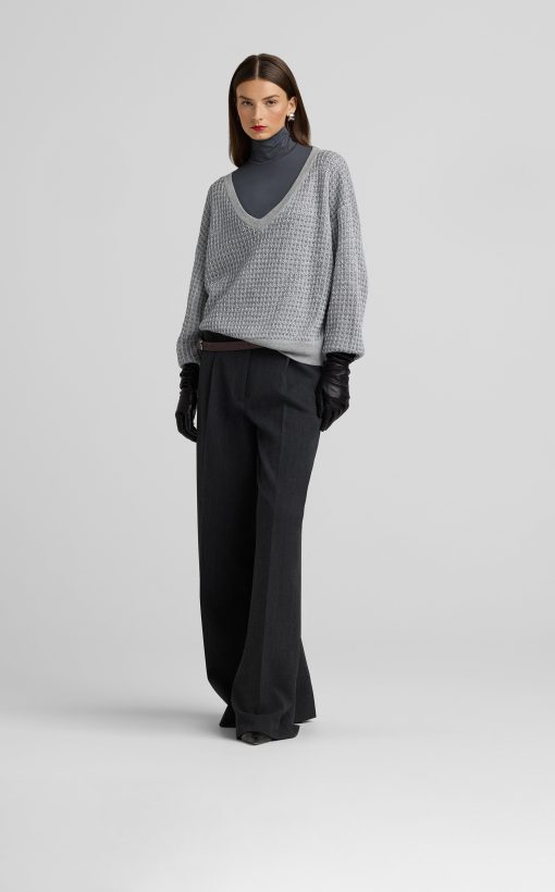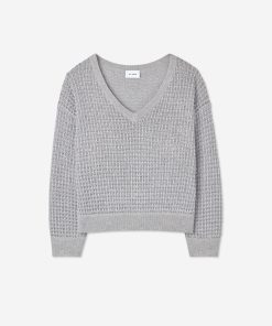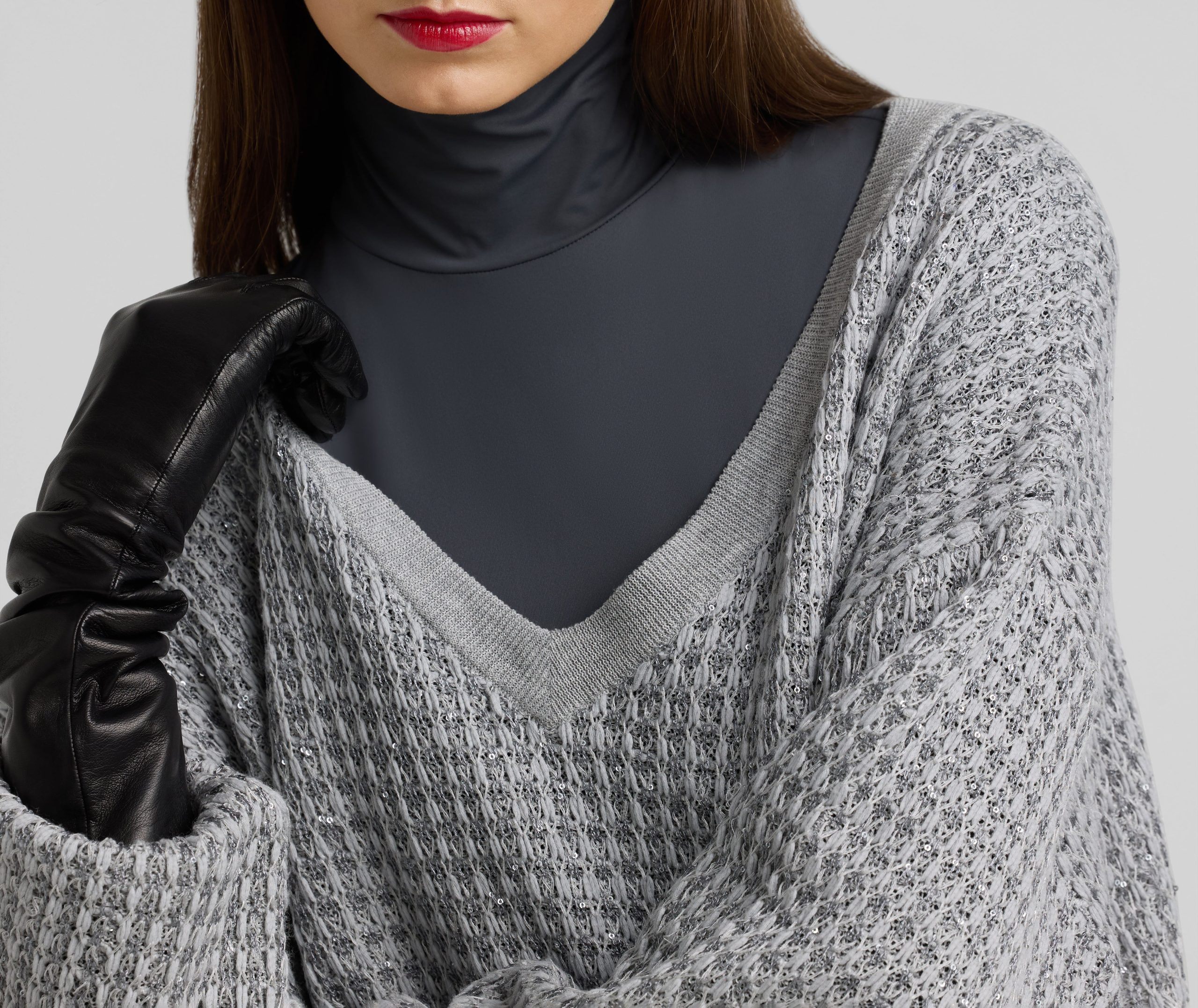 Sparkly sequins dress up a relaxed fit, textured V-neck sweater, a cozy and chic piece that elevates daytime wear and goes full glam for evening.All Sales are Final. No Returns or Exchanges.