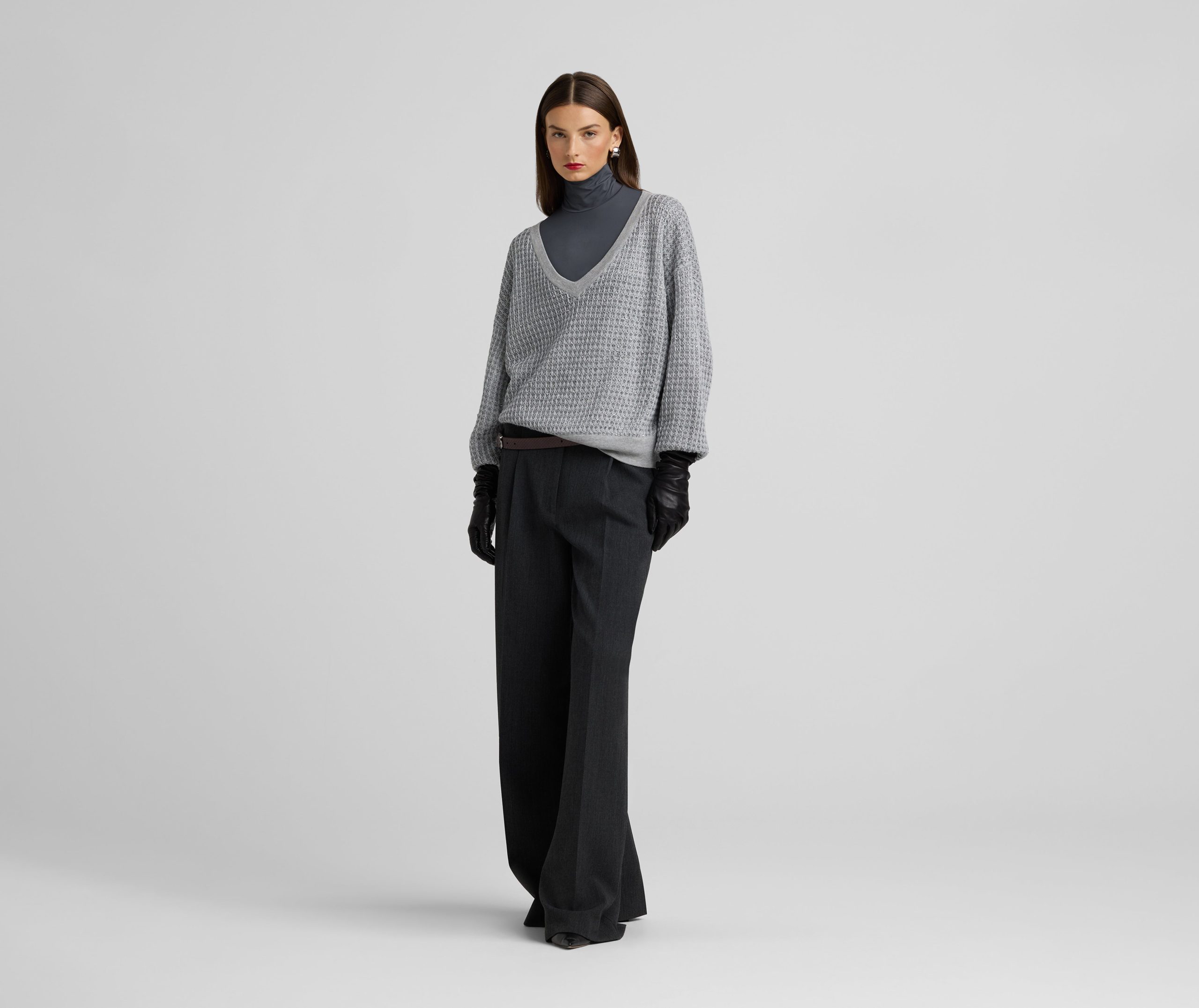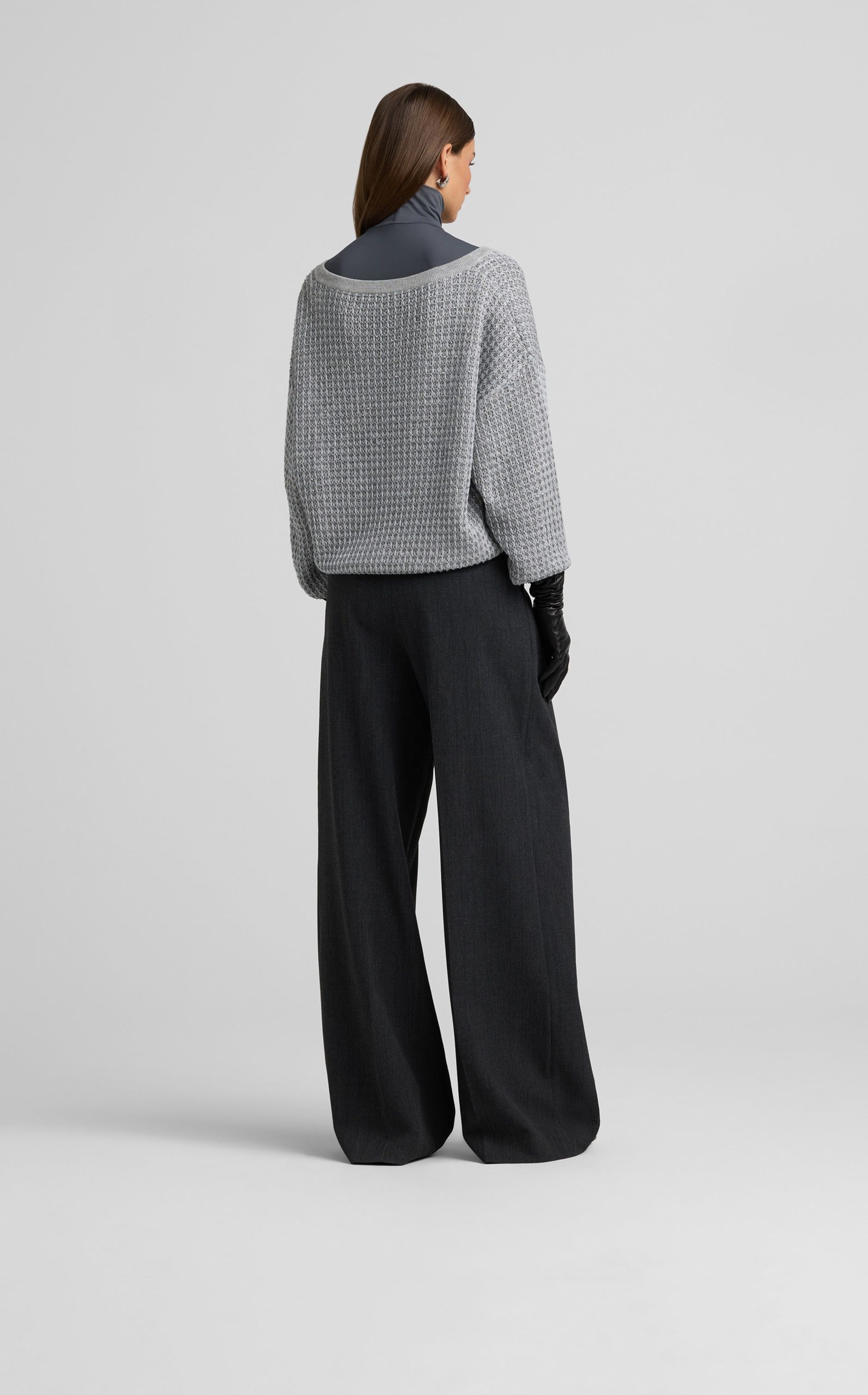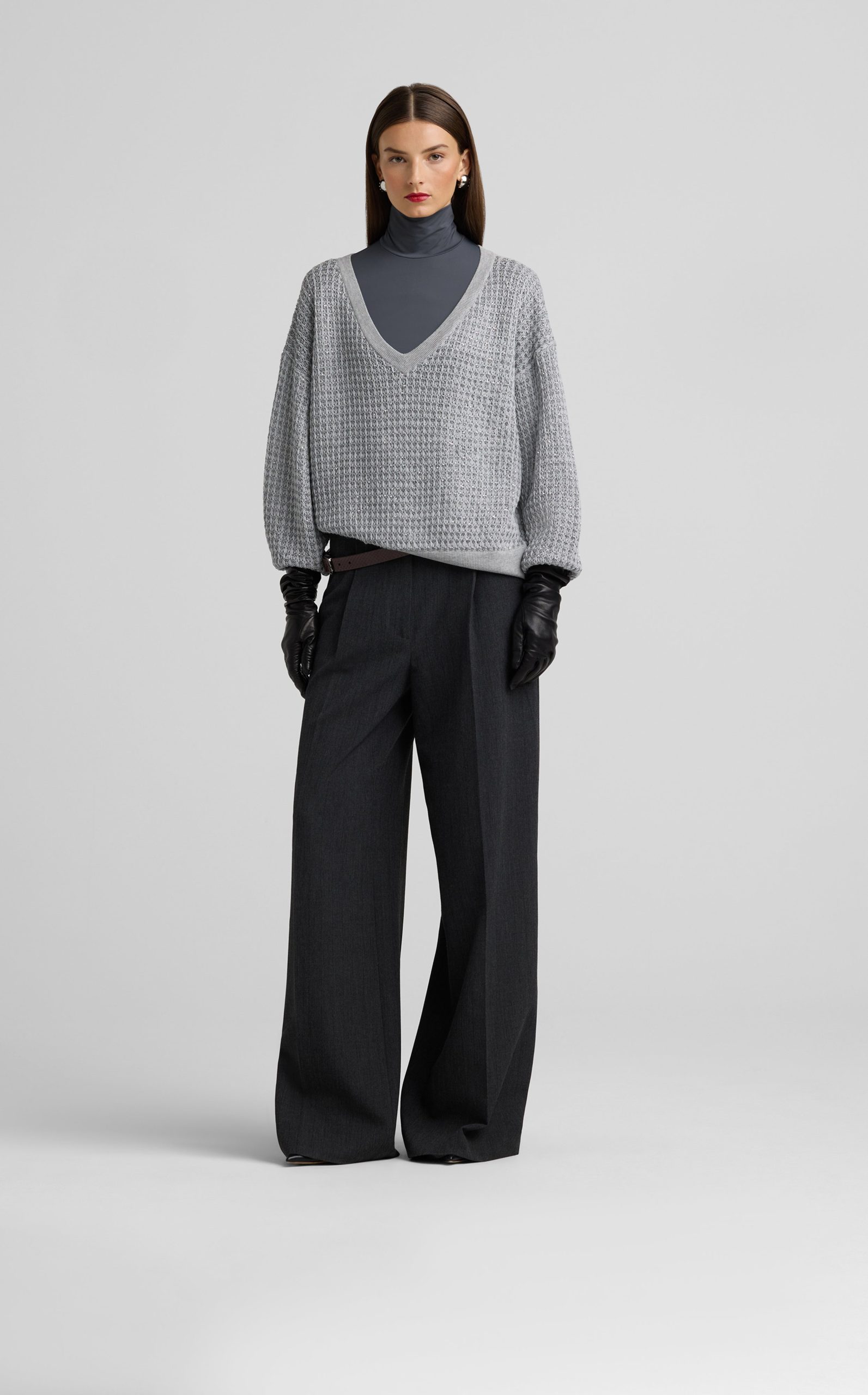 Sparkly sequins dress up a relaxed fit, textured V-neck sweater, a cozy and chic piece that elevates daytime wear and goes full glam for evening.All Sales are Final. No Returns or Exchanges.