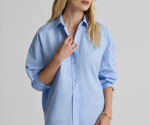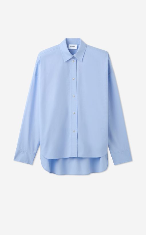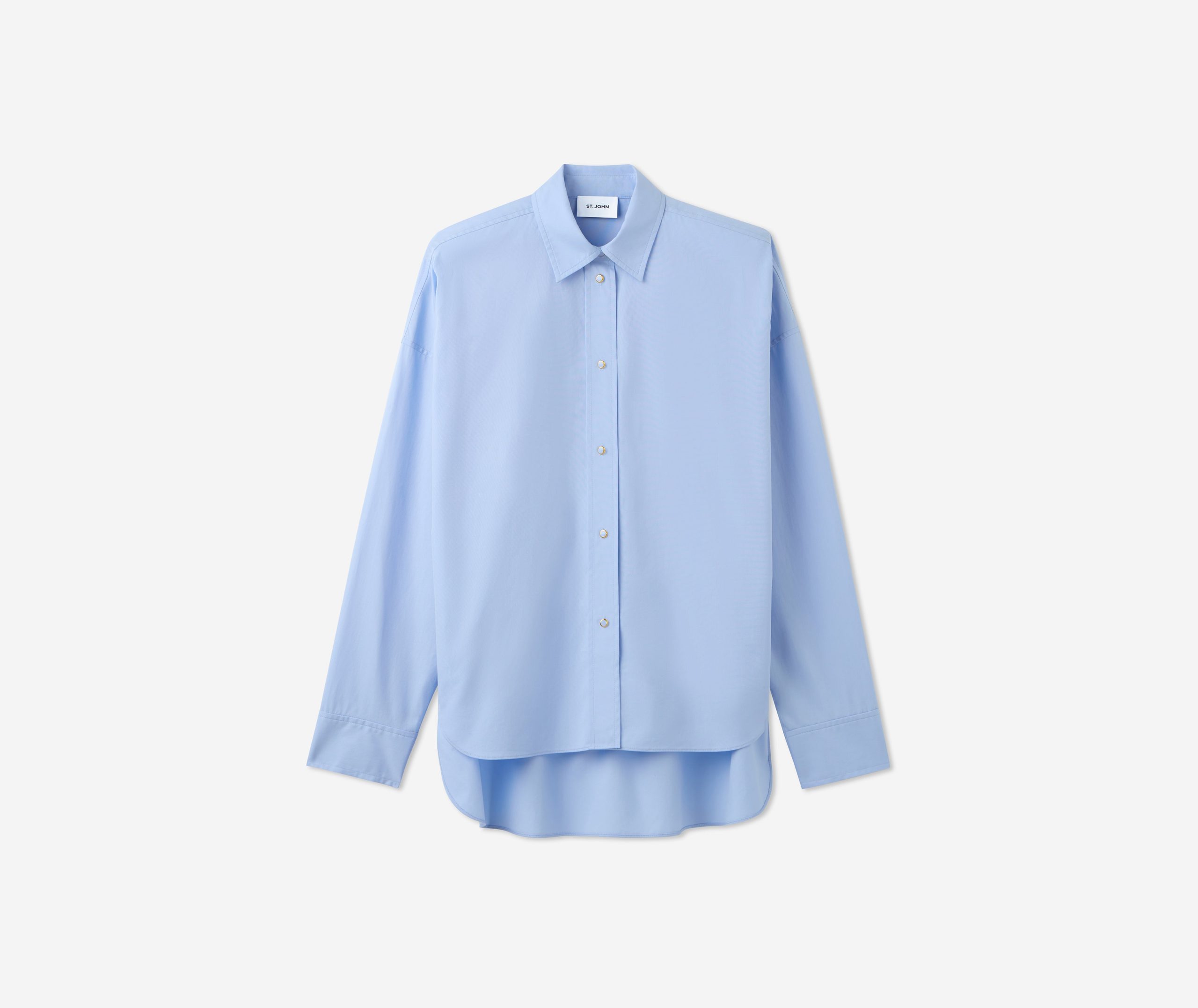 St.John Women’s Sharon Blouse In Cotton Poplin | Crisp Blue