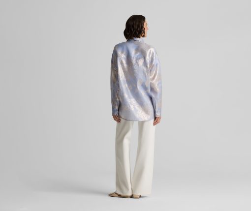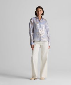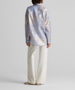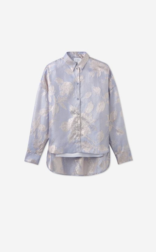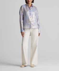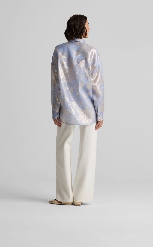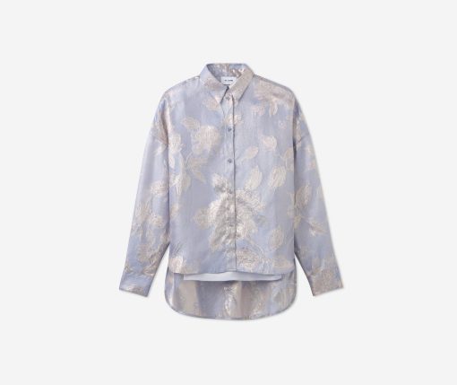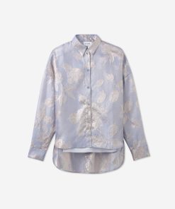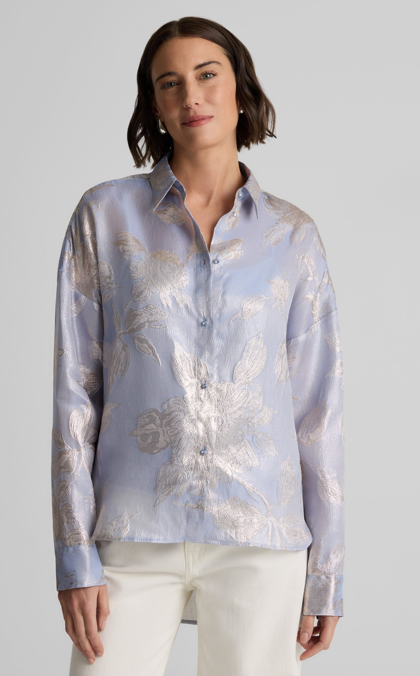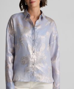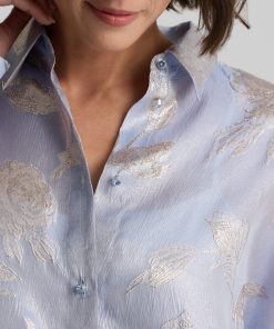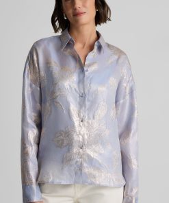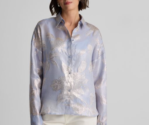 Consider this button-down blouse a must-have for the modern romantic. The Sharon features an intricate floral motif and bejeweled buttons for a baroque touch, while a built-in cami adds coverage to make this embellished top an elegant wardrobe standout for both day and evening wear. This piece features a relaxed, oversized design. For a more contoured look, consider sizing down.