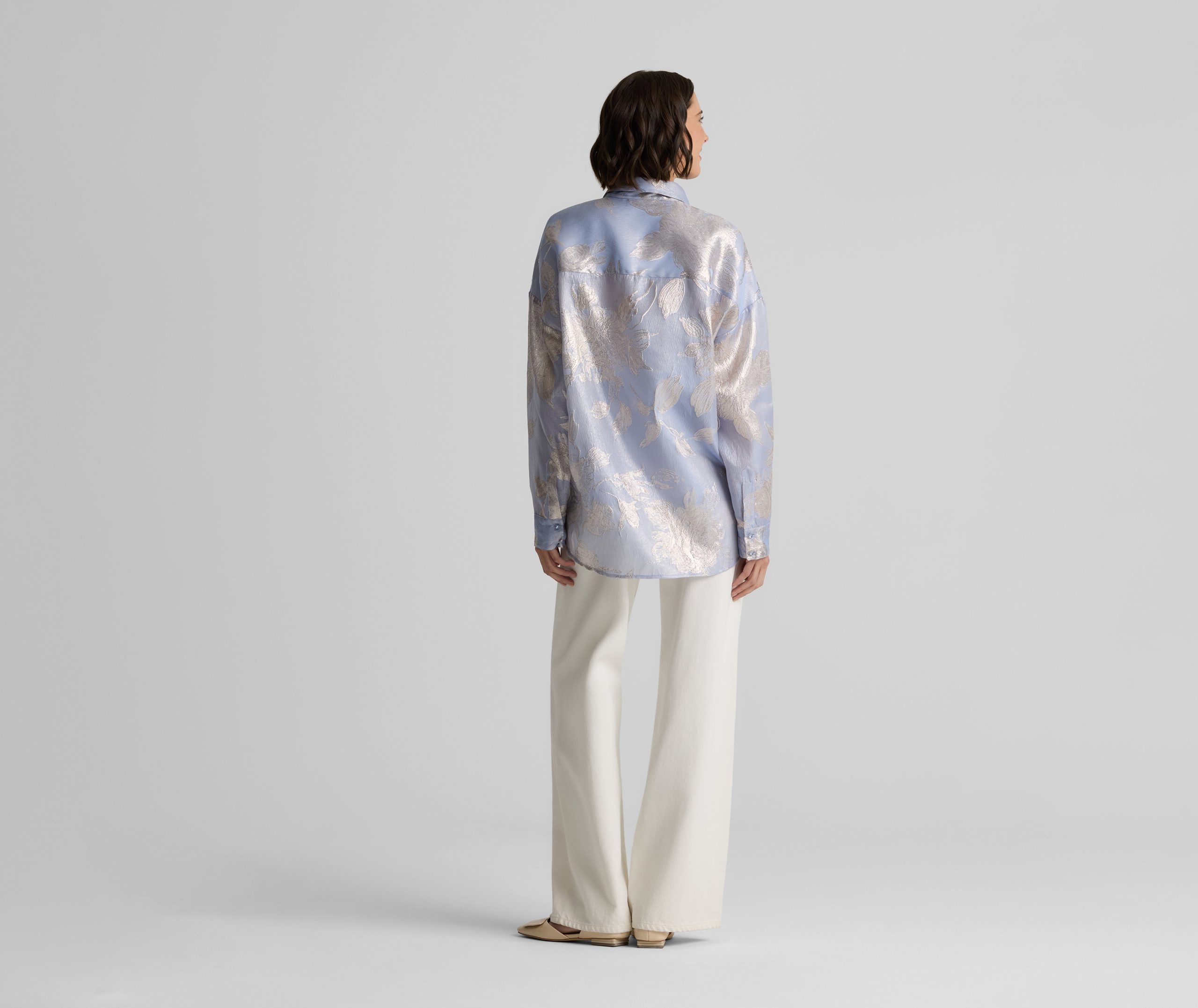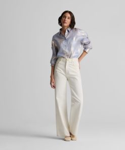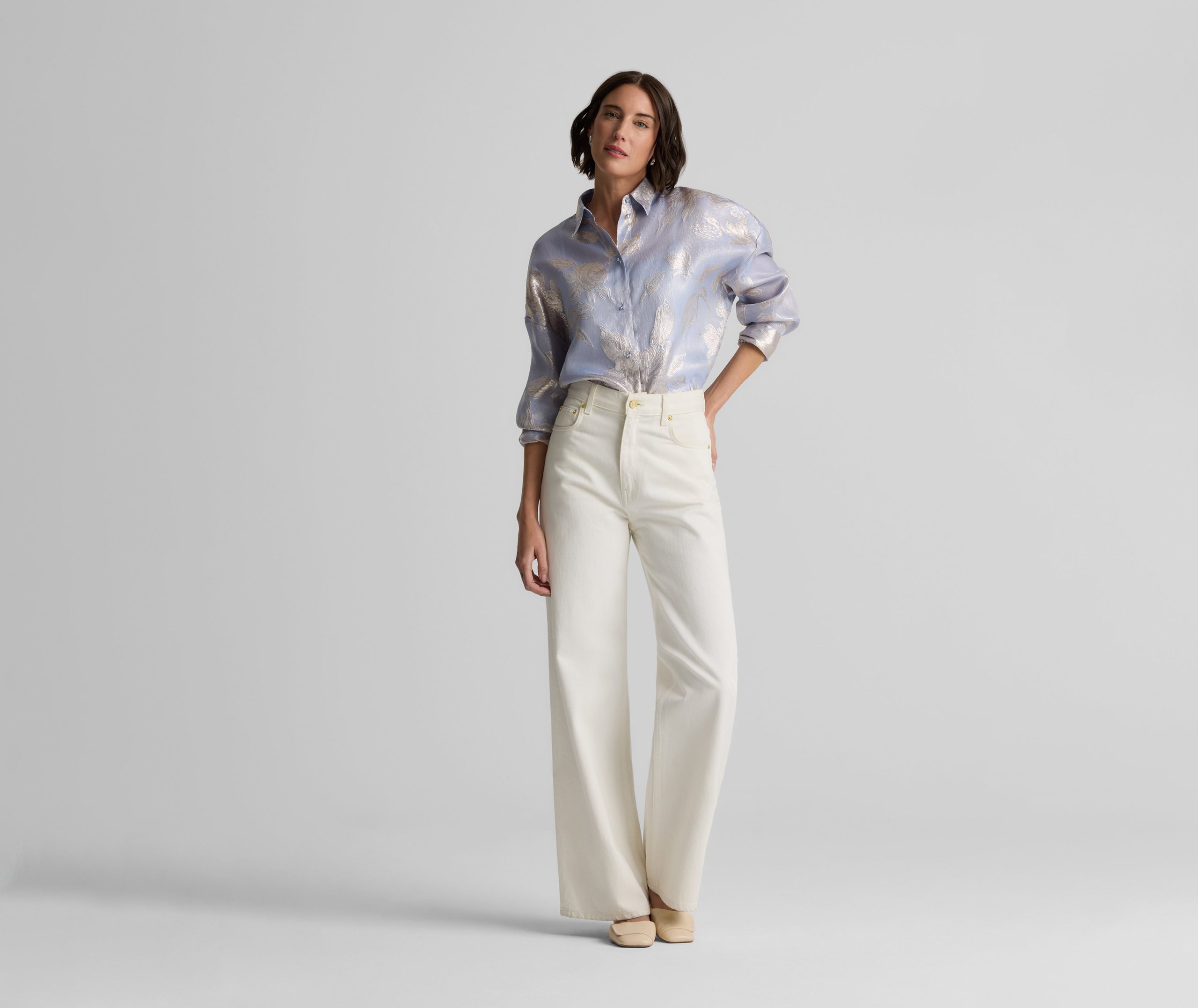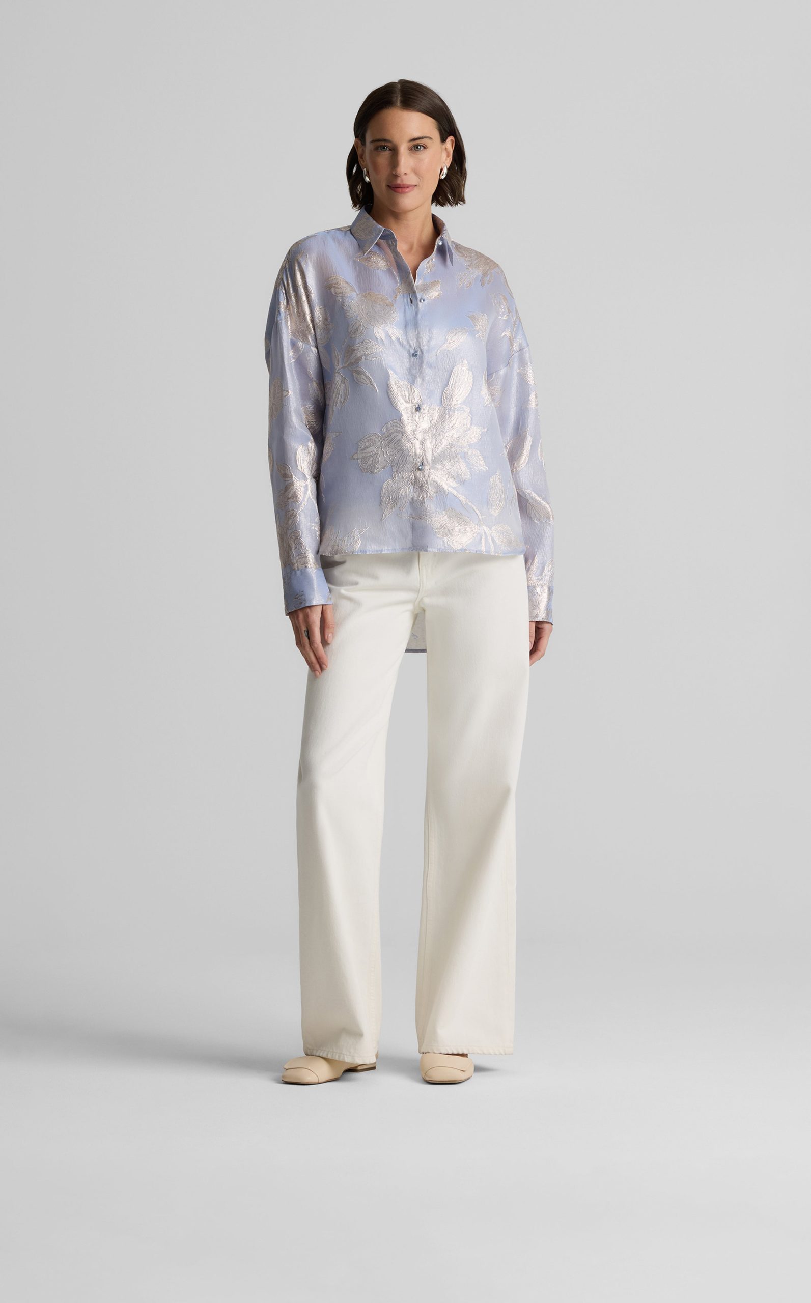 Consider this button-down blouse a must-have for the modern romantic. The Sharon features an intricate floral motif and bejeweled buttons for a baroque touch, while a built-in cami adds coverage to make this embellished top an elegant wardrobe standout for both day and evening wear. This piece features a relaxed, oversized design. For a more contoured look, consider sizing down.