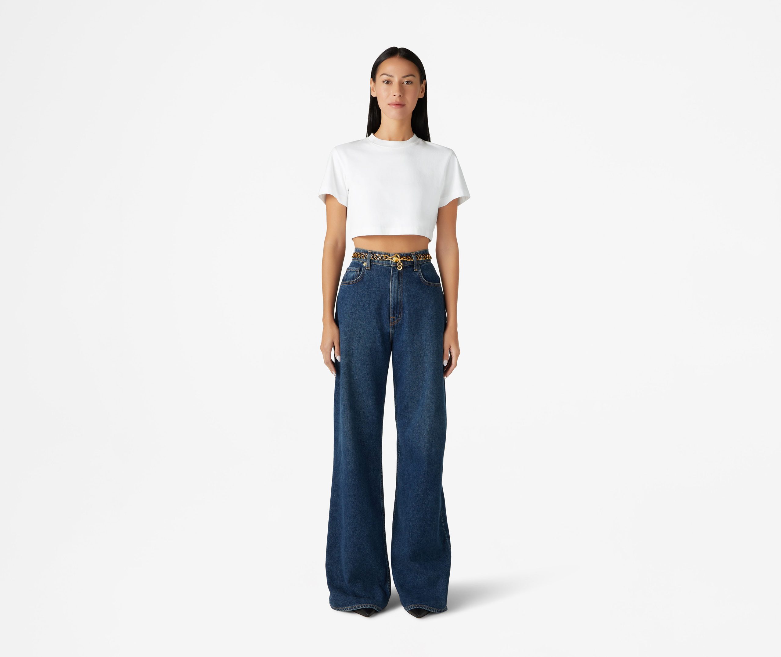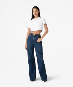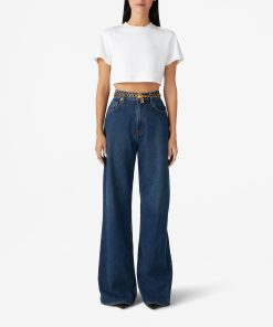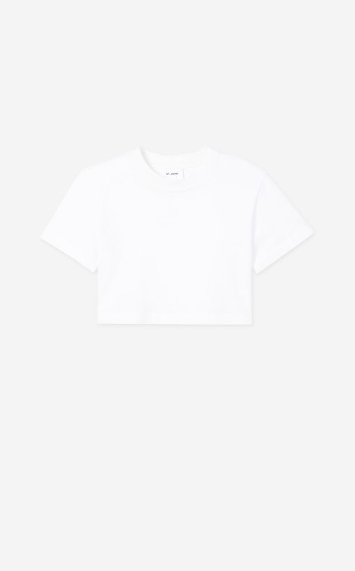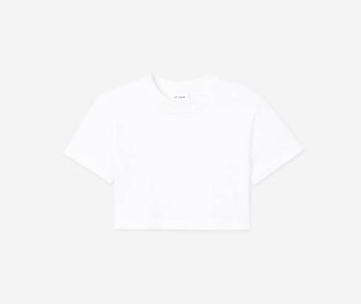 The short sleeve jersey crewneck top is cropped just enough, for a fresh take on the classic tee.