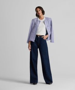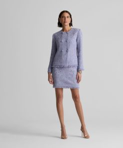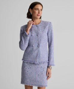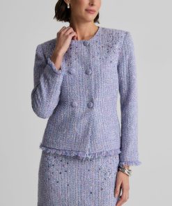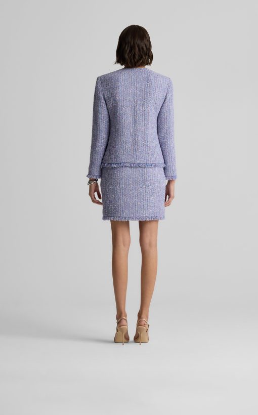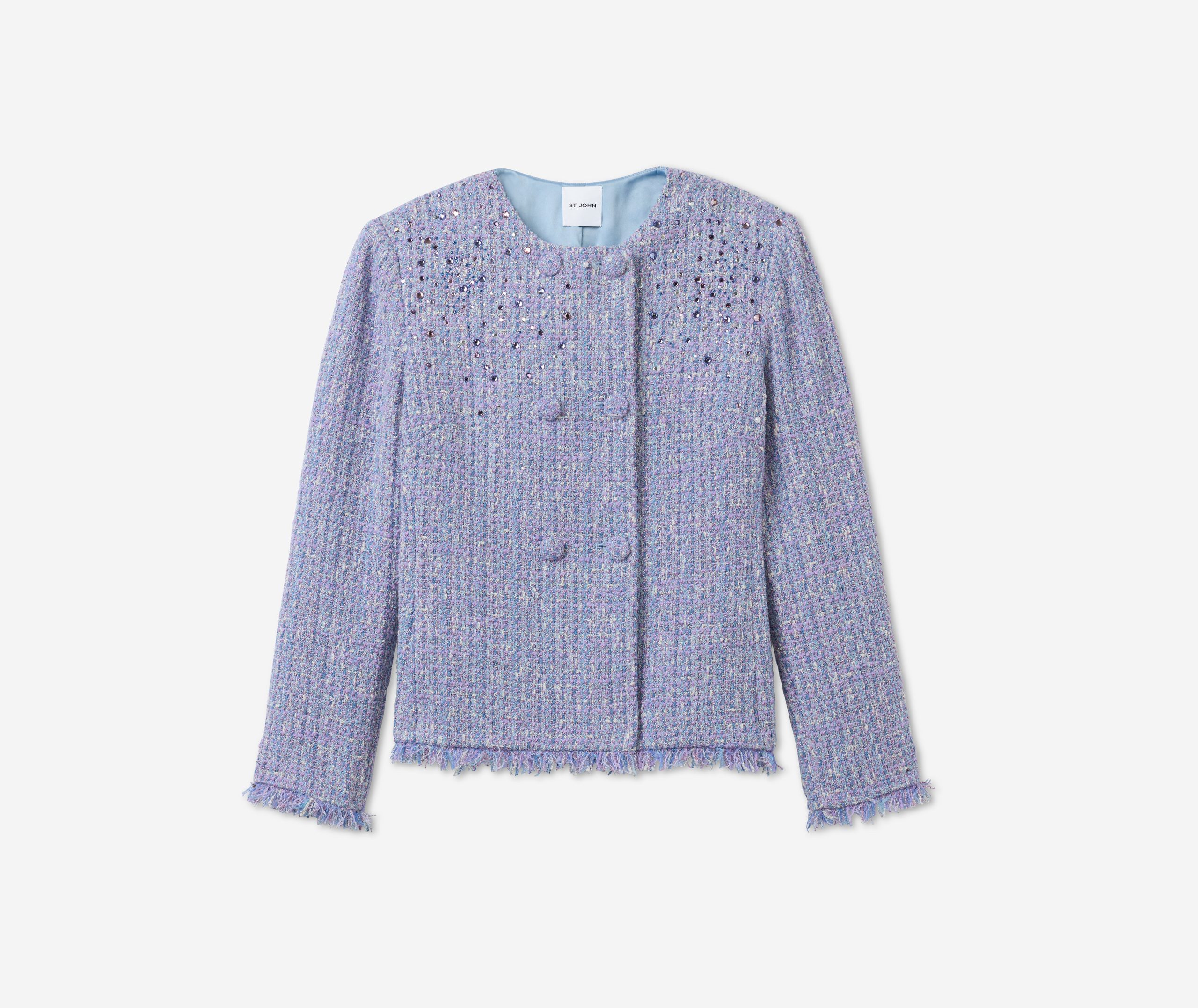 Balancing timeless sophistication and quiet opulence, the Sinclair Jacket features light-catching metallic stretch Monroe Tweed, shimmering embellishments, and fringed edges for a evening layer that is the epitome of elegance.