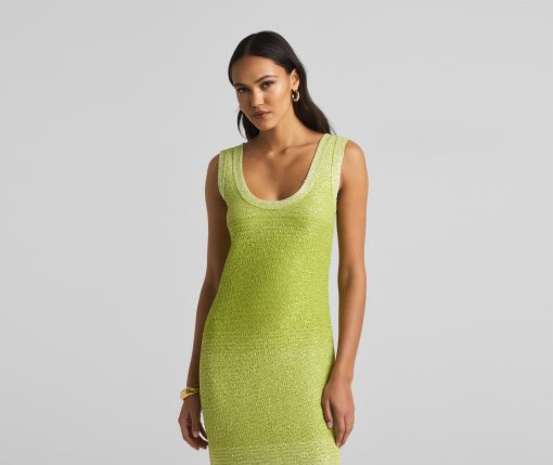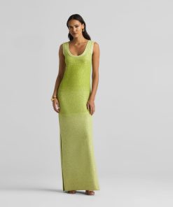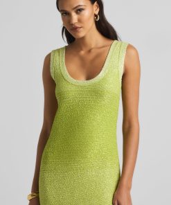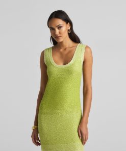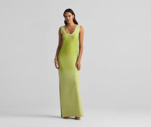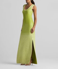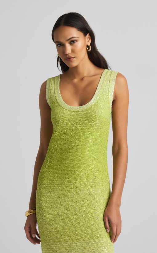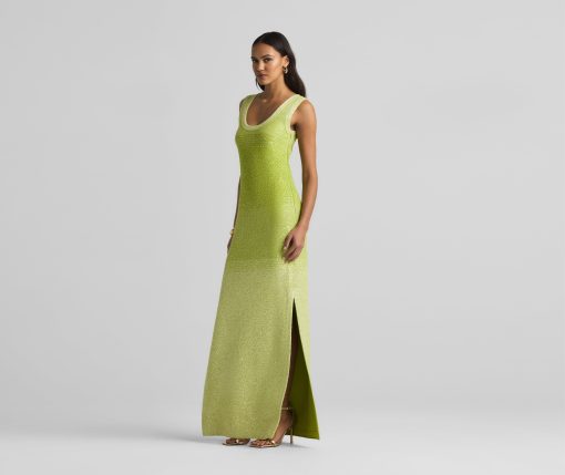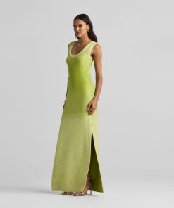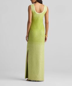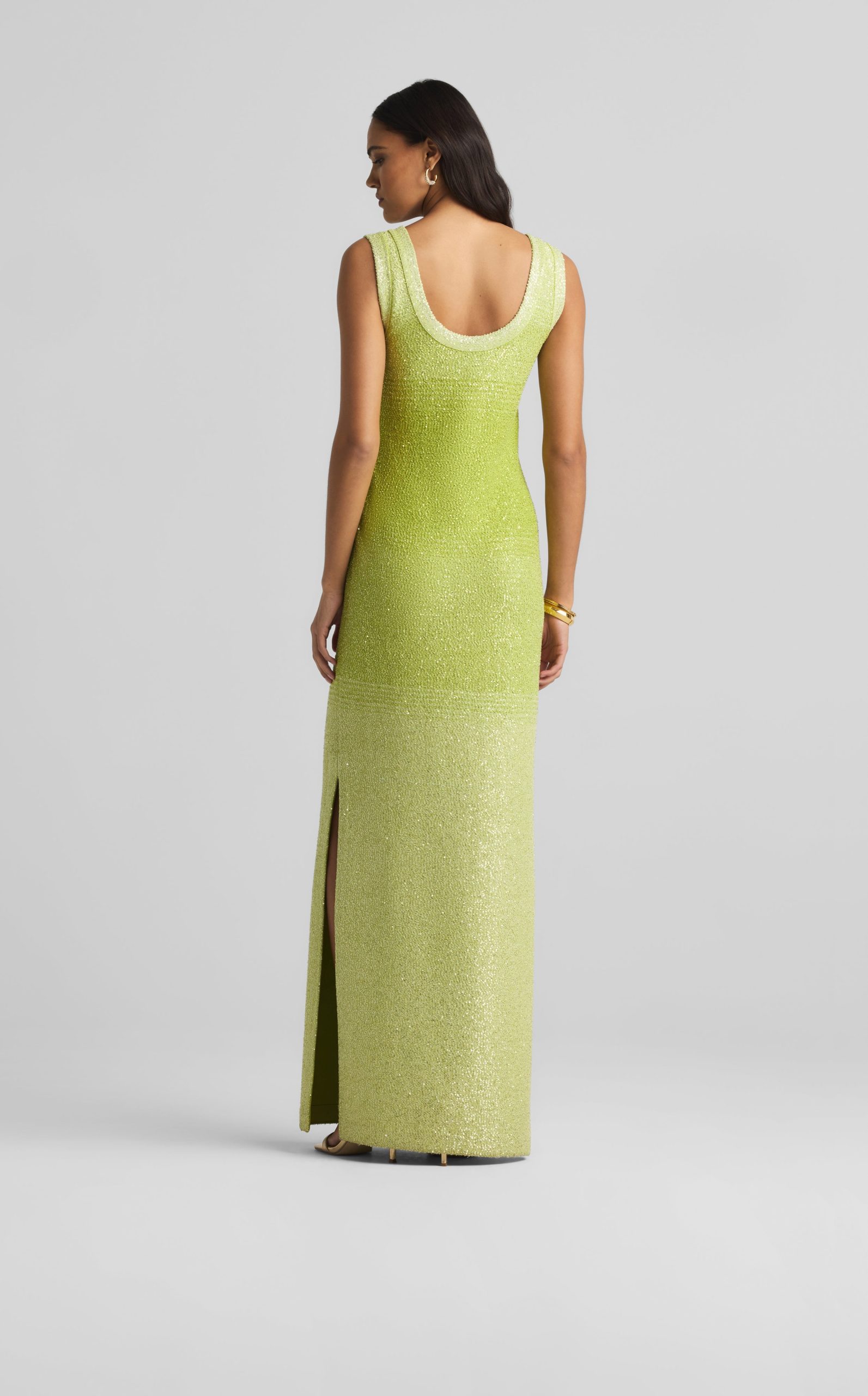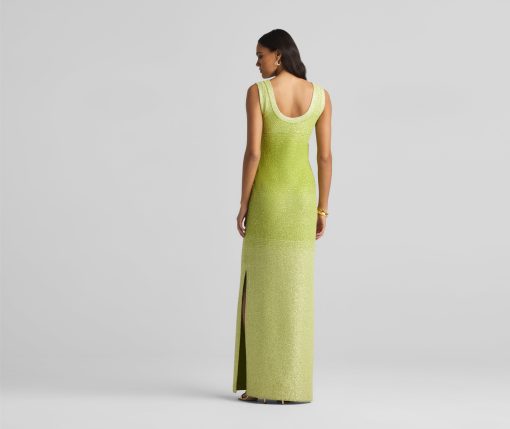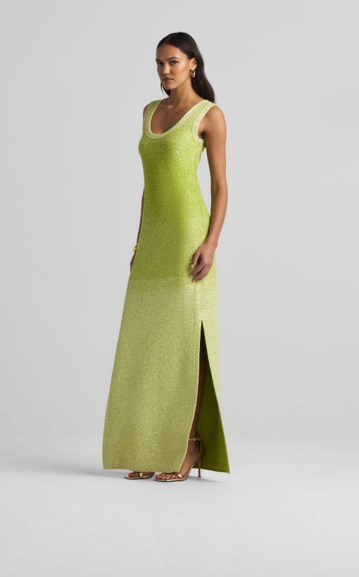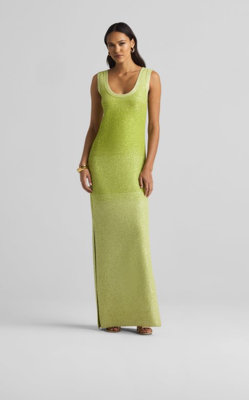 A ribbed scoop neck freshens this sparkly sleeveless gown, crafted in a degrade sequin ombré knit with subtle striping and side slits.All Sales are Final. No Returns or Exchanges.