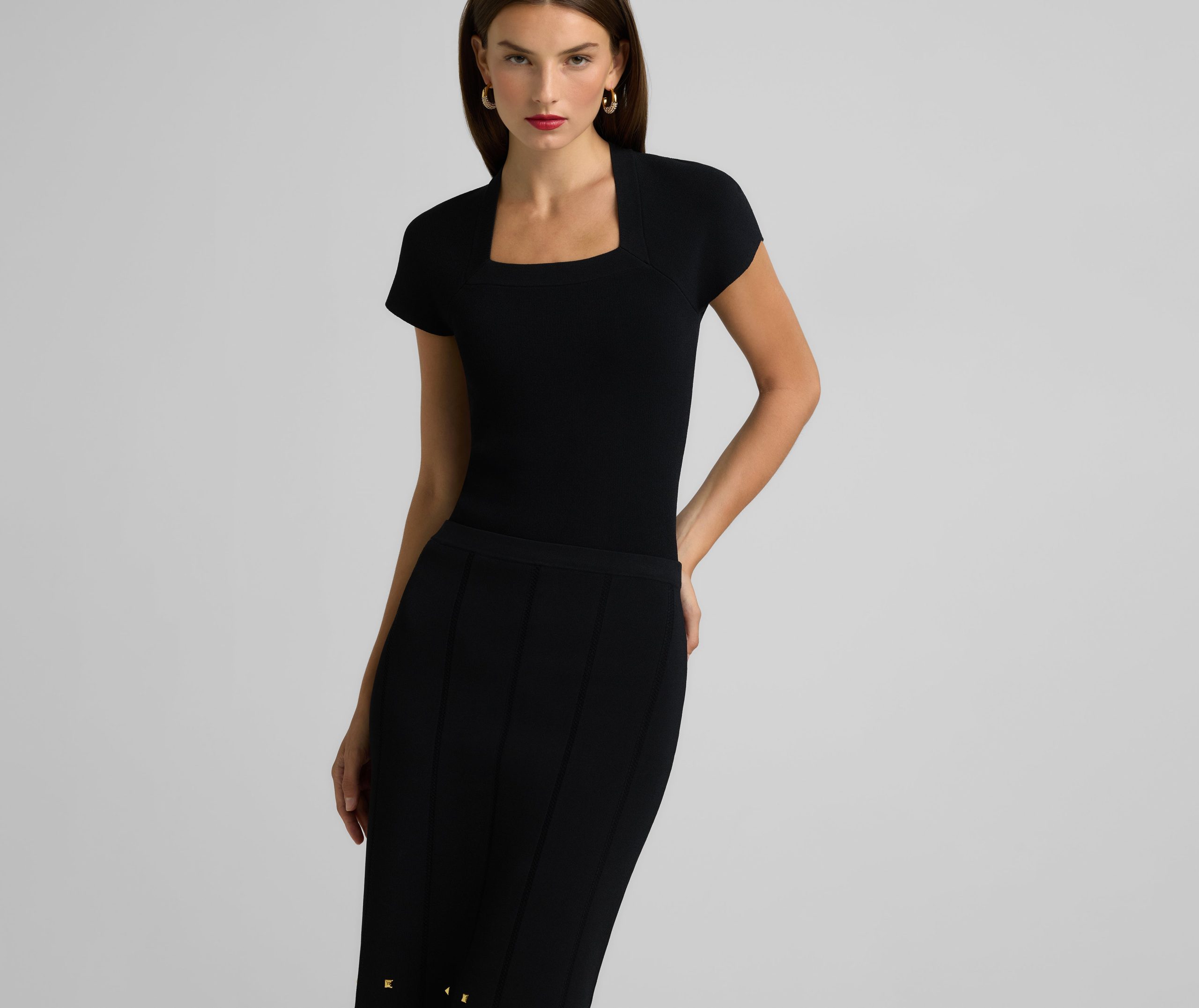 With a nod to the ’90s, this square neck short sleeve knit sweater brings personality to the pretty top, easy to dress up or down for endless looks.All Sales are Final. No Returns or Exchanges.