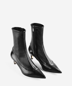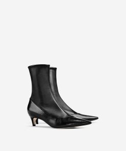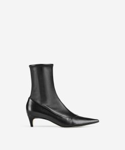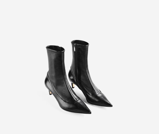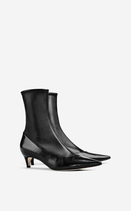 With a perfectly pointed toe and vintage-inspired seaming, this stretch leather kitten heeled bootie is the must-have short boot, complete with a zipper for easy wear.Sergio Rossi presents a special collection for St. John. Your footwear will be delivered in a Sergio Rossi shoebox, with St. John branding on the insole.