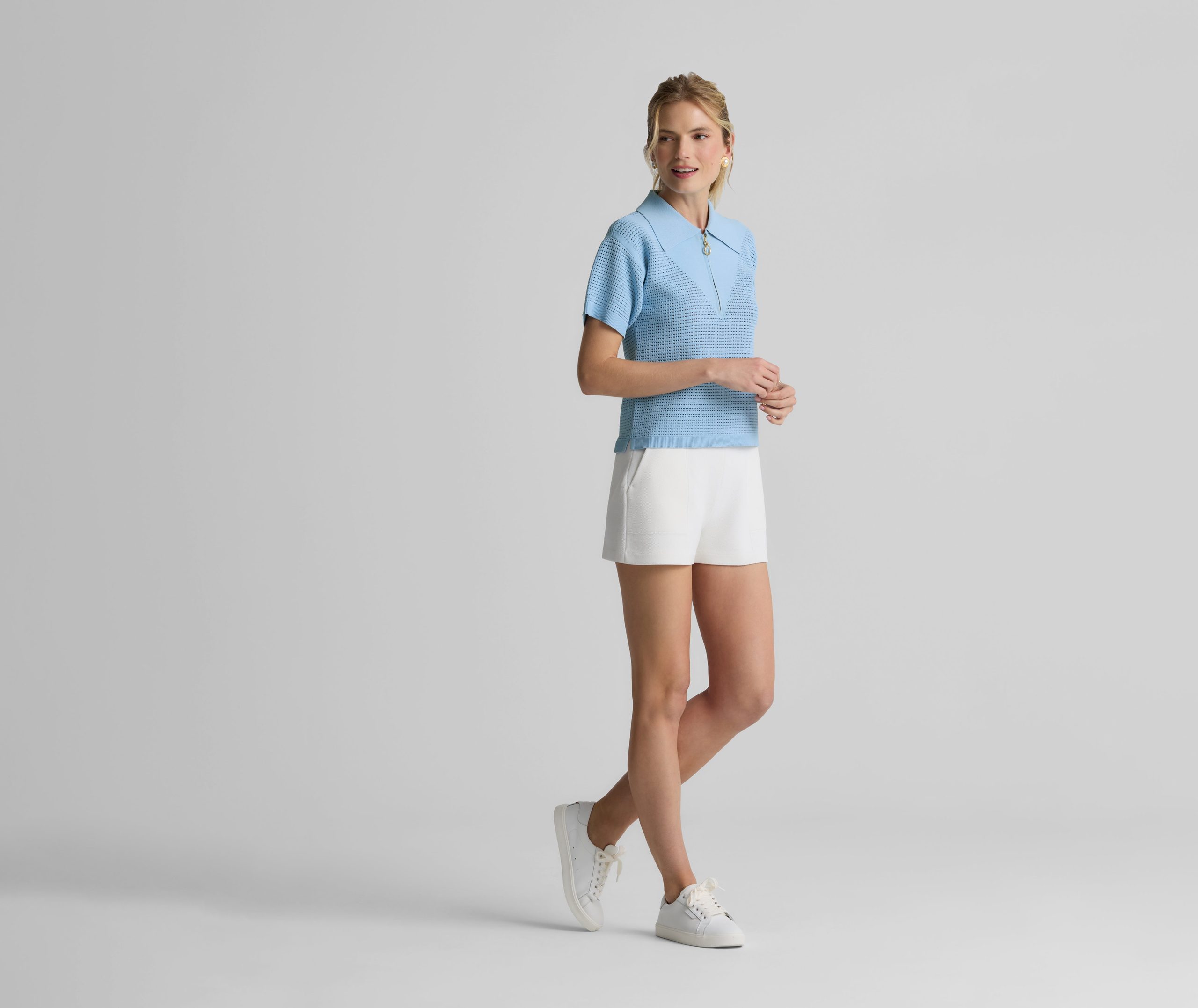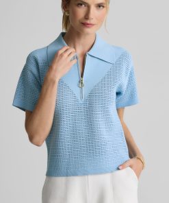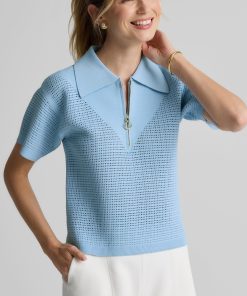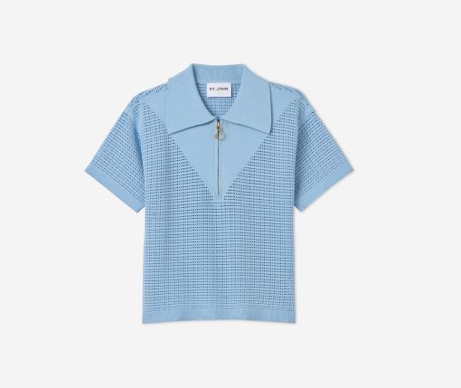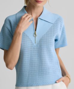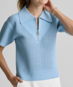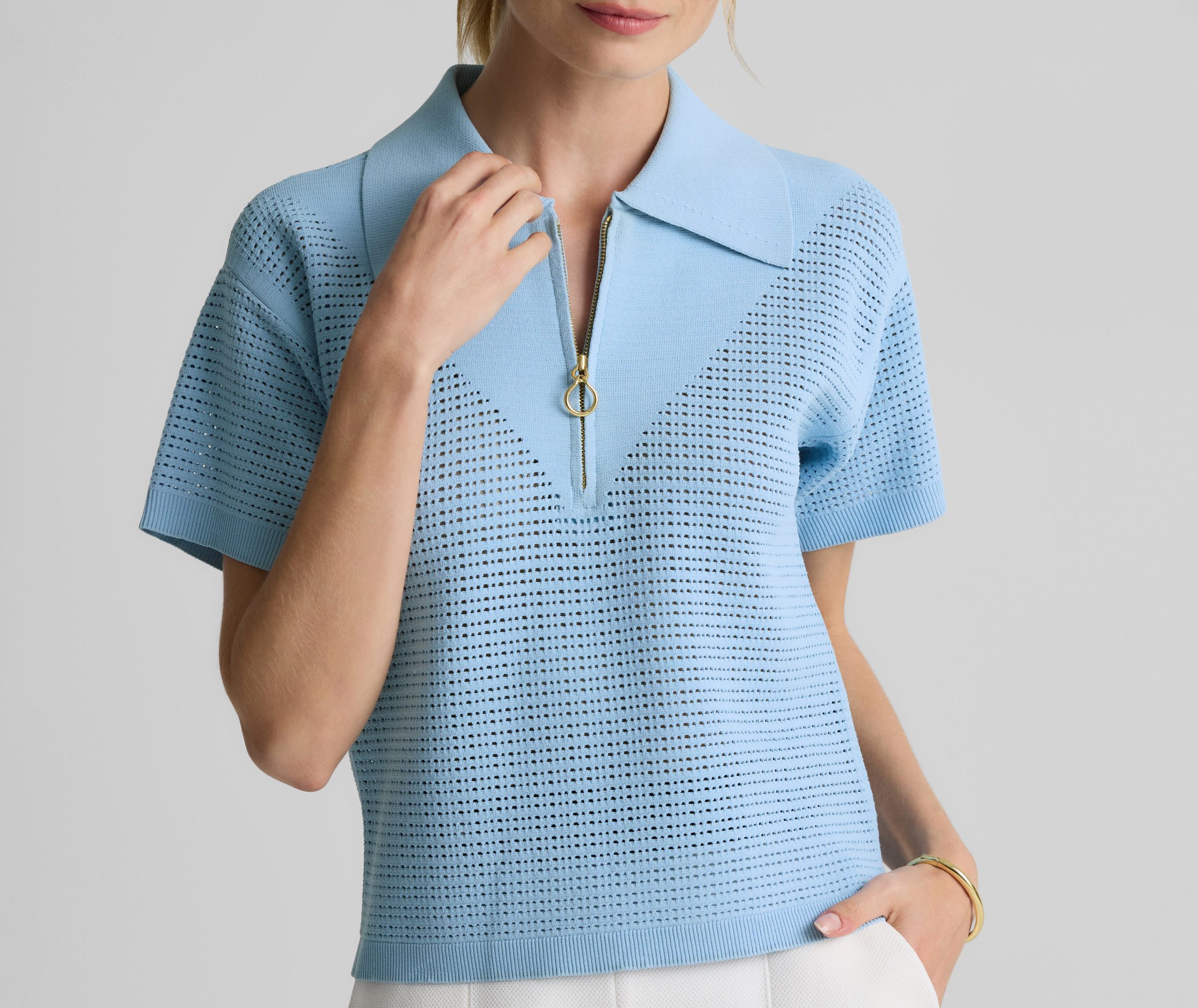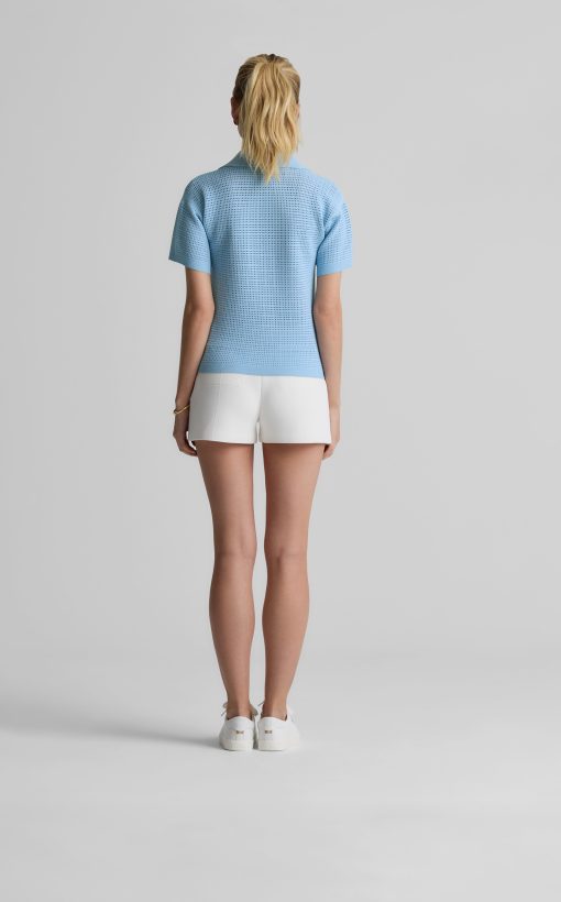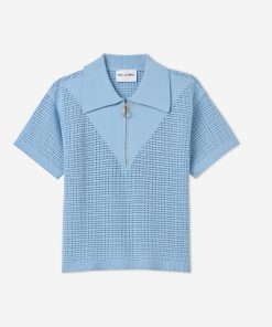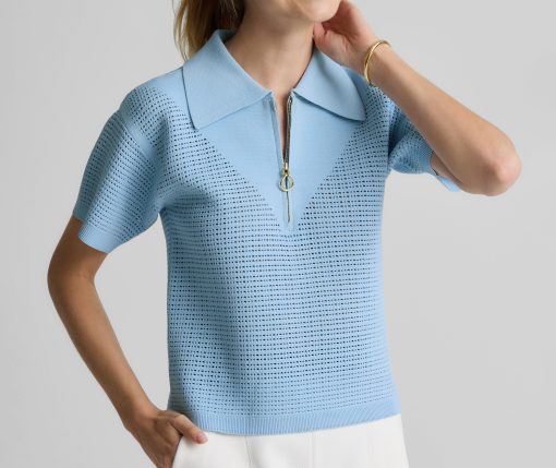 Created in an exclusive collaboration with influential golf brand Malbon, the Sydney modernizes the classic polo while keeping few preppy retro touches. Made from a breathable open knit in bright Celeste, this tailored top features a zip collar for versatility on or off the green and delicate ribbed trim for a polished finish.