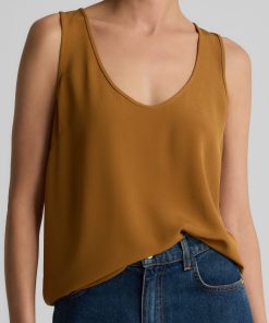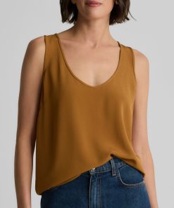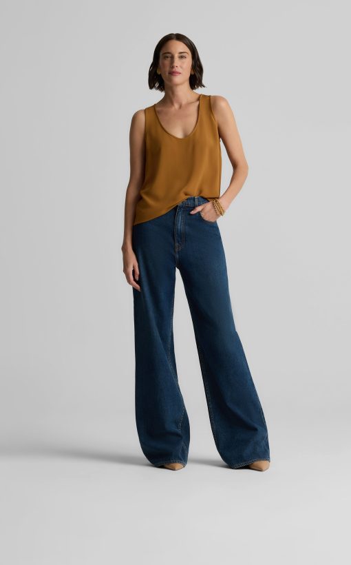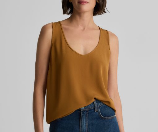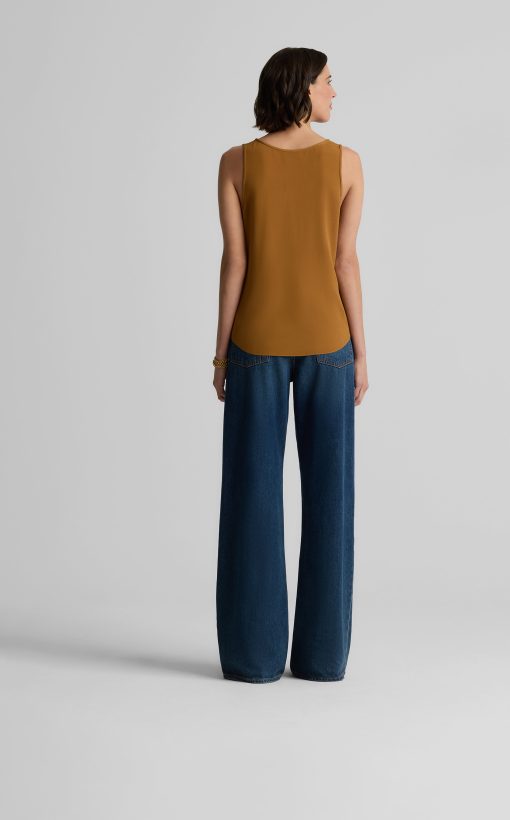 In rich Cinnamon, the Vanessa layers luxuriously under blazers and leather jackets, but can also be worn on its own as a breezy but sophisticated top in warmer weather. The elegant drape from its fluid silk crepe as well as its graceful U-neckline transforms the classic shell into an elevated essential.