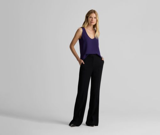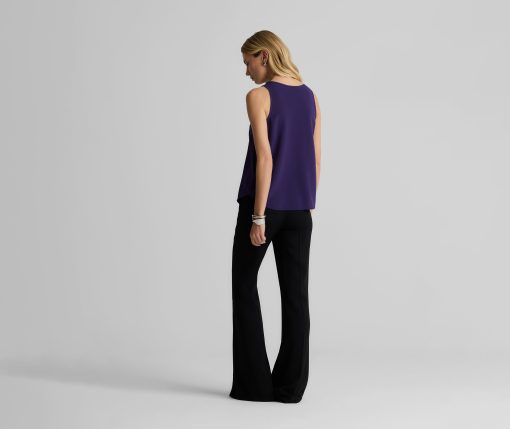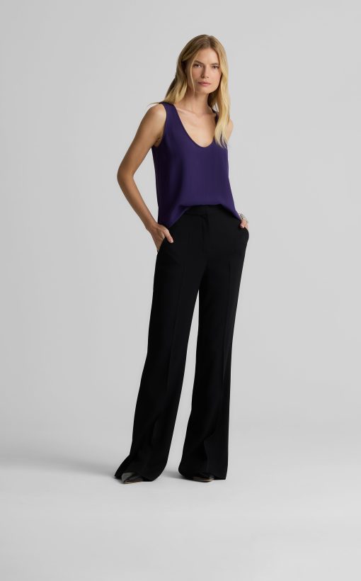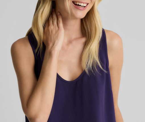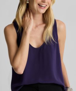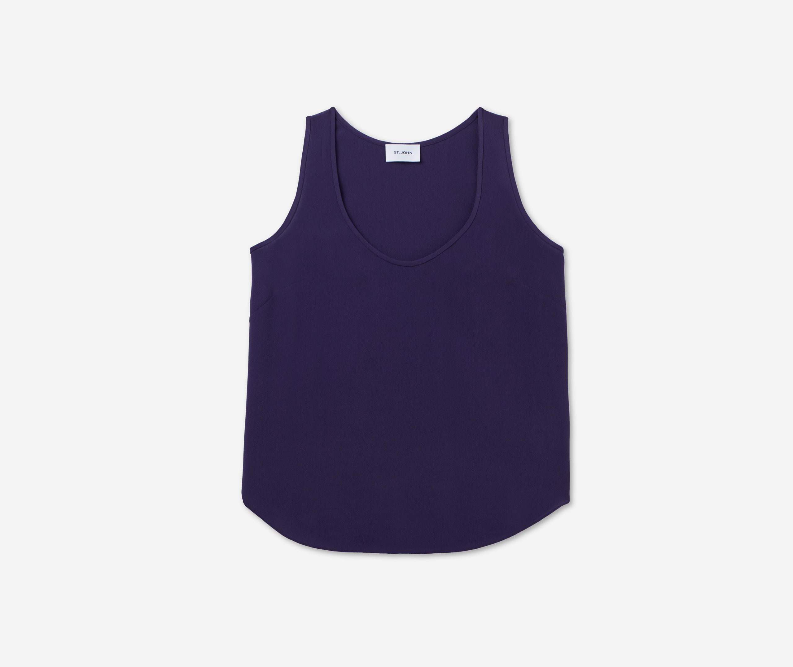 In regal Deep Purple, the Vanessa layers luxuriously under blazers and leather jackets, but can also be worn on its own as a breezy but sophisticated top in warmer weather. The elegant drape from its fluid silk crepe as well as its graceful U-neckline transforms the classic shell into an elevated essential.