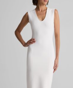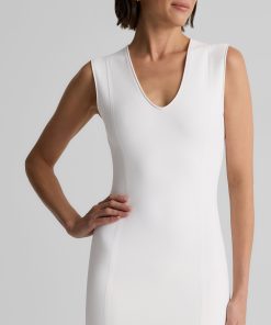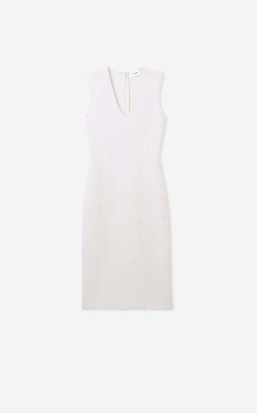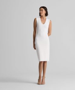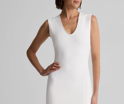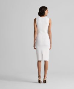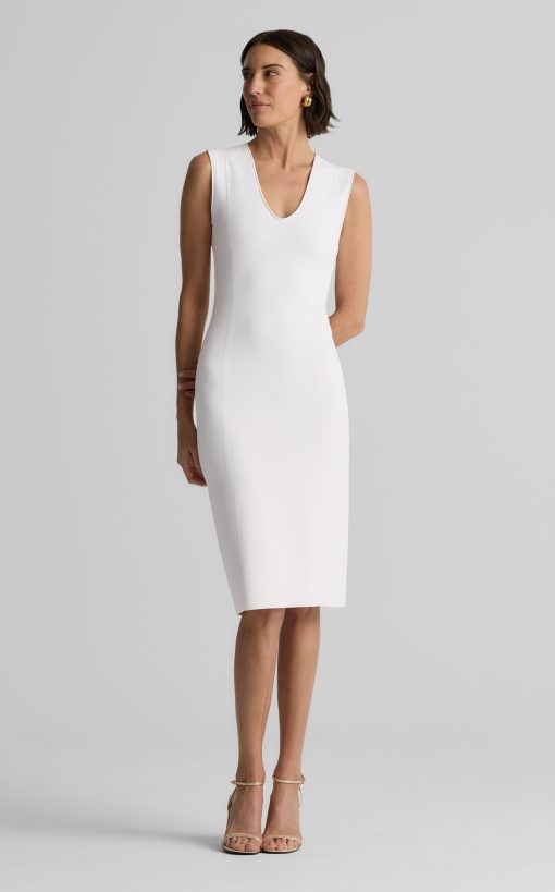 Crisp yet comfortable, the Victoria in classic Ivory is a sophisticated addition to your workwear wardrobe, but its flattering front seams and V-neckline make it a versatile staple for occasions well beyond the office. Made from smooth Santa Rosa Knit, this sleeveless dress can be worn on its own to make a modern, minimalist statement, or layered beneath our matching Harper Jacket for coordinated polish.