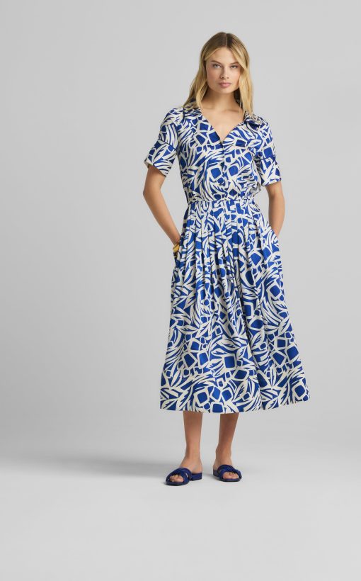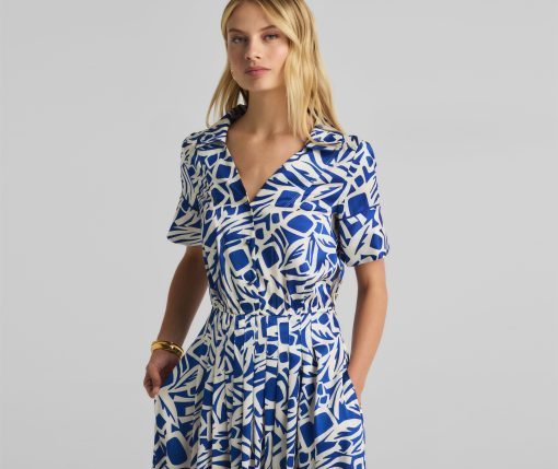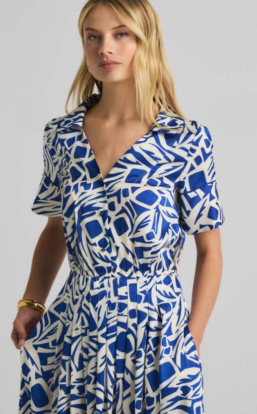 A vintage-inspired button-front shirt dress features short sleeves and a midi length, while a bold botanical pattern livens up the timeless look.All Sales are Final. No Returns or Exchanges.