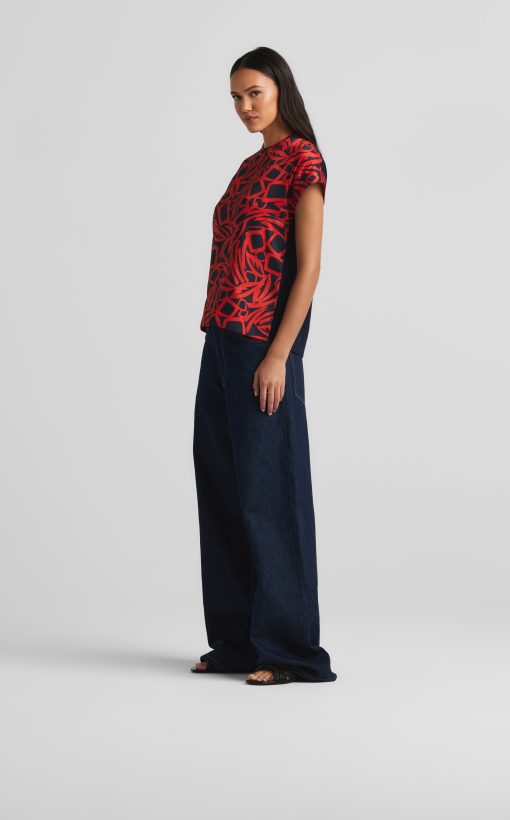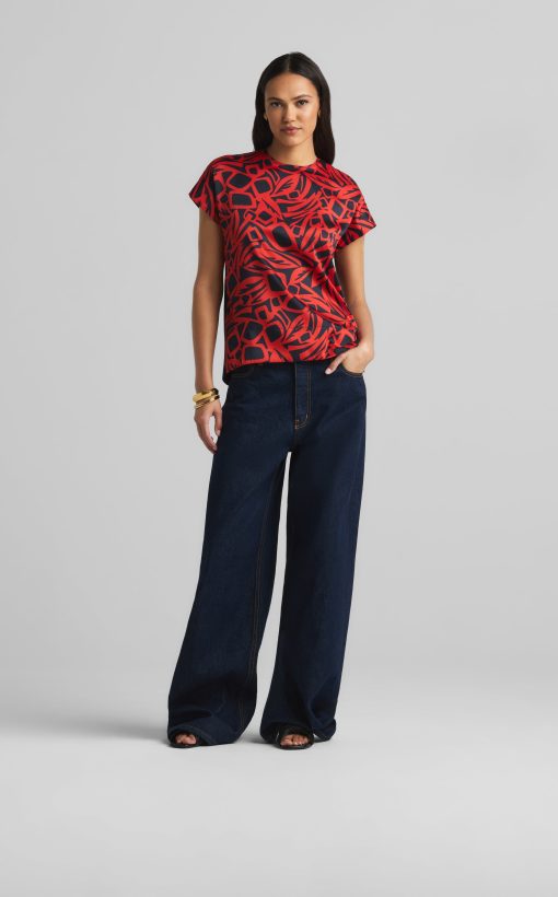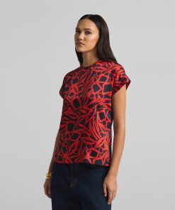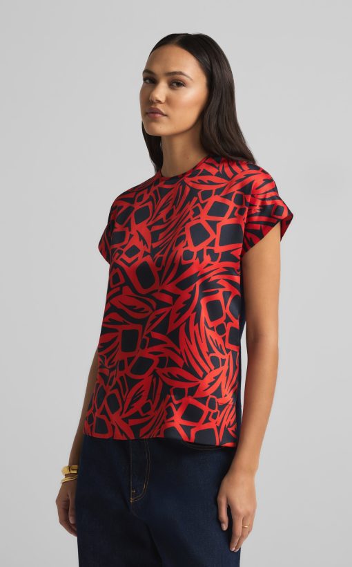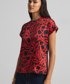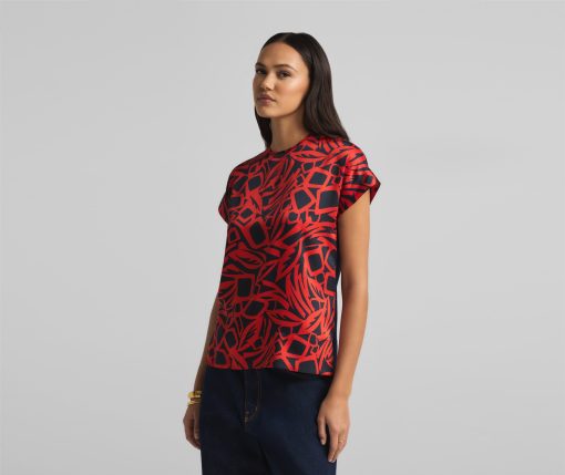 A vintage-inspired botanical print brings abstract art to this round neck, cap sleeve top with notes of leaves in the front and a solid back.All Sales are Final. No Returns or Exchanges.