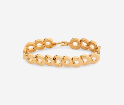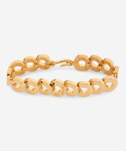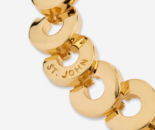 The open circles of this washer coin bracelet show peeks of skin through the glistening gold of this just-chunky-enough bracelet.