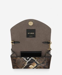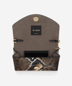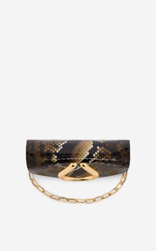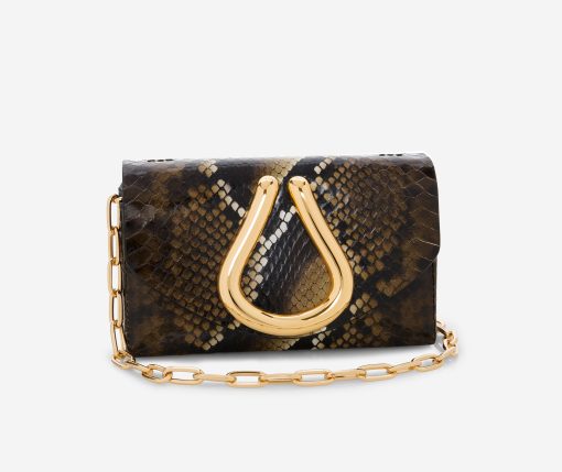 Mini Loop watersnake handbag with front flap, metal loop detail and removable chain strap. Lend a luxe note to your everyday with this mini version of our Loop leather handbag. Elegant snake patterning and the gleaming metal loop detail create a sumptuous contrast.Offers complimentary delivery and returns. Delivery and Return Policy