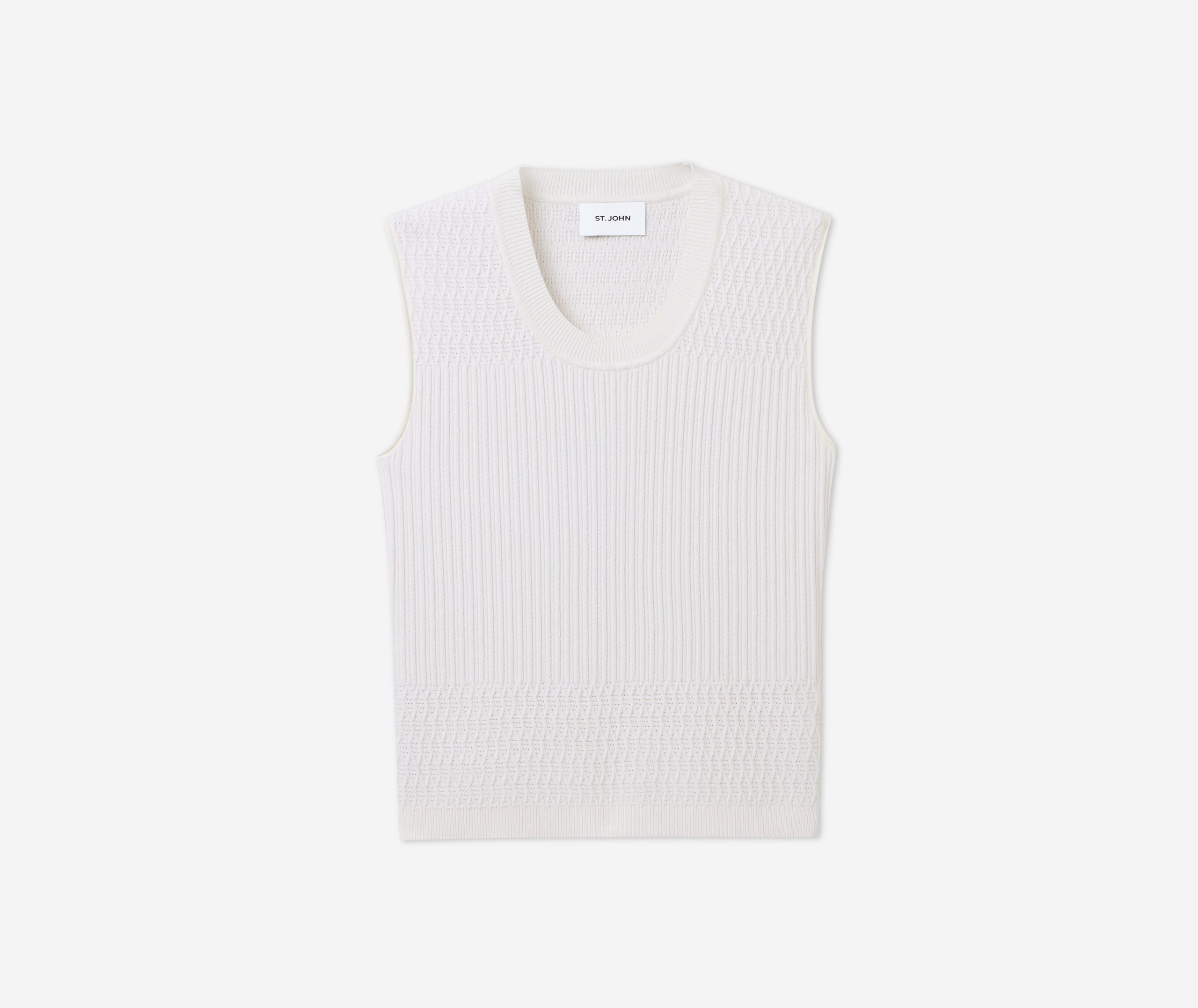 This sleek, sleeveless shell cut from our delicately ribbed Fine Mixed Knit makes for an essential yet elegant layering piece. Wear the Wren with our coordinating River Cardigan to create a classic twin set, or on its own when the weather heats up.